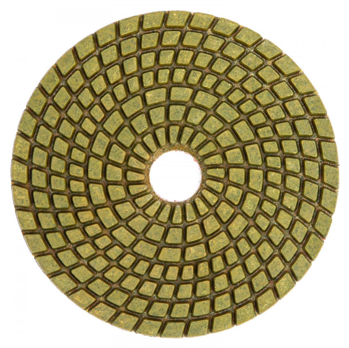 Алмазный гибкий шлифовальный круг Matrix 73507 диаметром 100 мм, с зернистостью P 50, 5 шт. в упаковке, предназначен для мокрого шлифования и используется при проведении строительных, отделочных и художественных работ. Абразив зернистостью P 50 позволяет проводить черновую обработку гранитных, каменных, керамогранитных и мраморных поверхностей. Рабочая часть выполнена из светло-зеленого термопластика с алмазным напылением и подходит для использования на цветных и черных материалах. Гибкая основа круга облегчает шлифовку рельефных элементов. Круг используется на УШМ с установленной опорной тарелкой для АГШК.