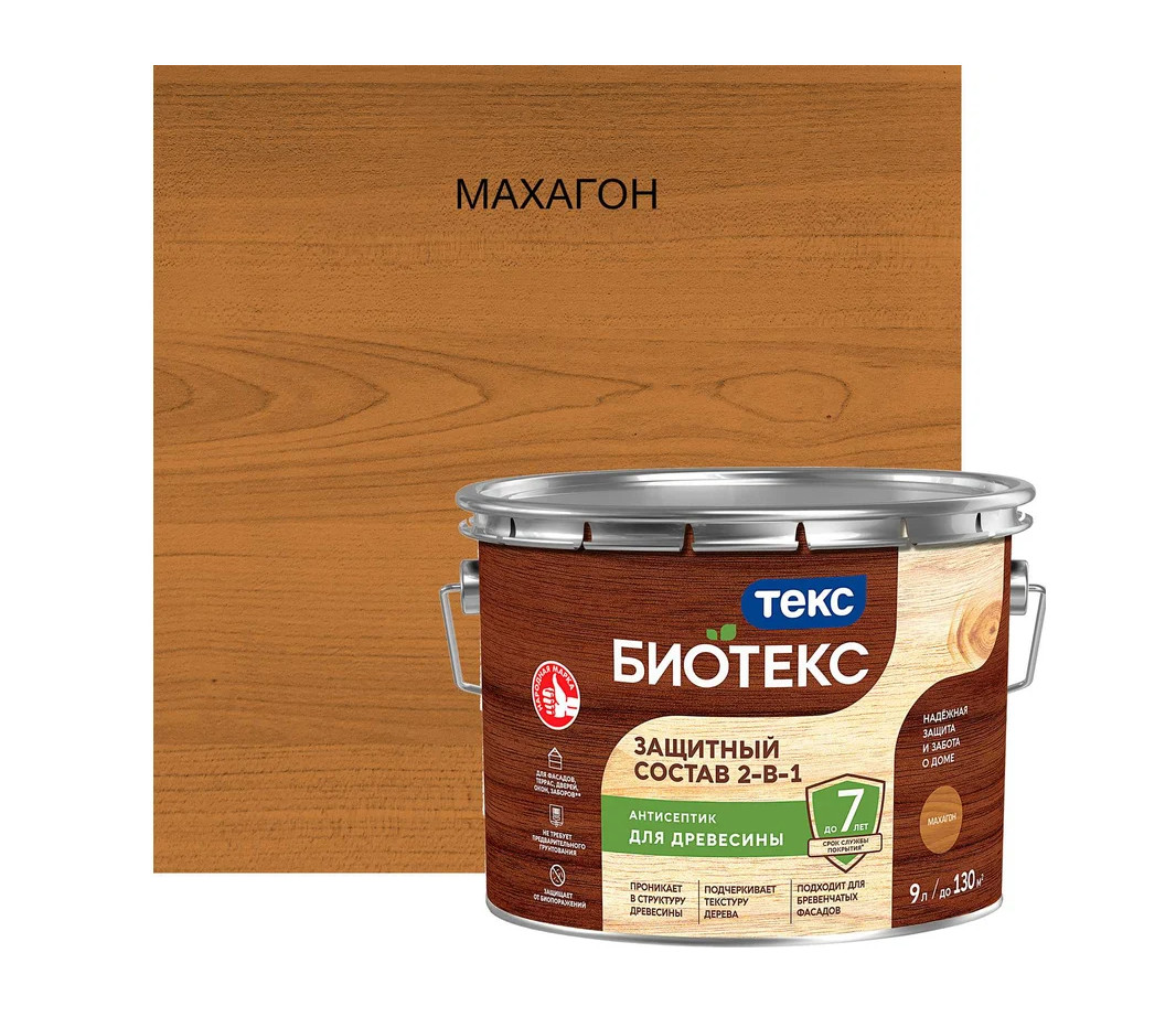Антисептик Биотекс 2-в-1 махагон 9л
