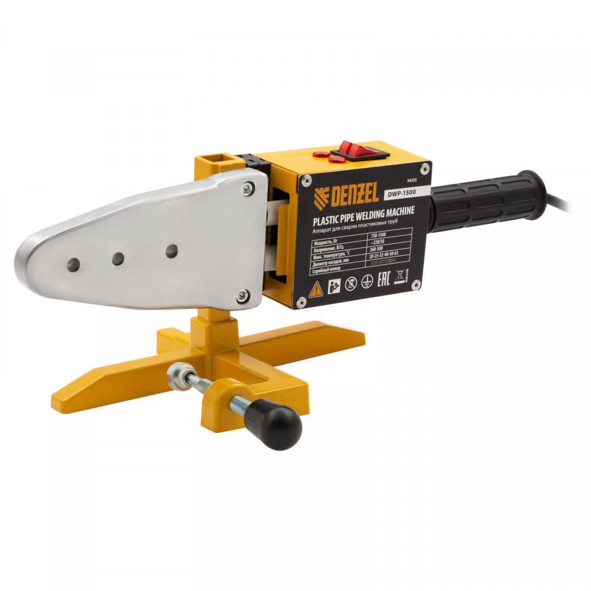 Аппарат для сварки пластиковых труб Denzel DWP-1500 94205 мощностью 1500 Вт предназначен для соединения полипропиленовых и полиэтиленовых труб диаметром 20, 25, 32, 40, 50 и 63 мм при нагреве до 260-300 °C. Незаменим во время ремонта и прокладки систем горячего и холодного водоснабжения, отопления, при проведении сантехнических работ с канализационными трубами и т.д. Питается от однофазной бытовой сети 220 В и имеет простой принцип работы, поэтому оптимален для использования в квартире и частном доме.