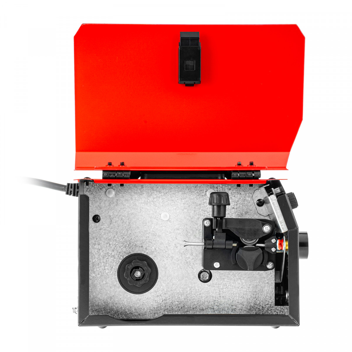 - Удобное использование — скорость подачи проволоки автоматически корректируется в зависимости от выбранного диаметра проволоки и заданного сварочного тока.