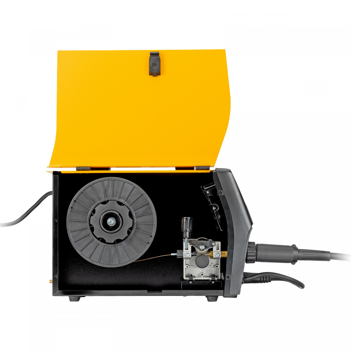 • Продуманная комплектация — аппарат поставляется с горелкой MIG, газовым шлангом и сварочными проводами (с электрододержателем и зажимом «земля»).