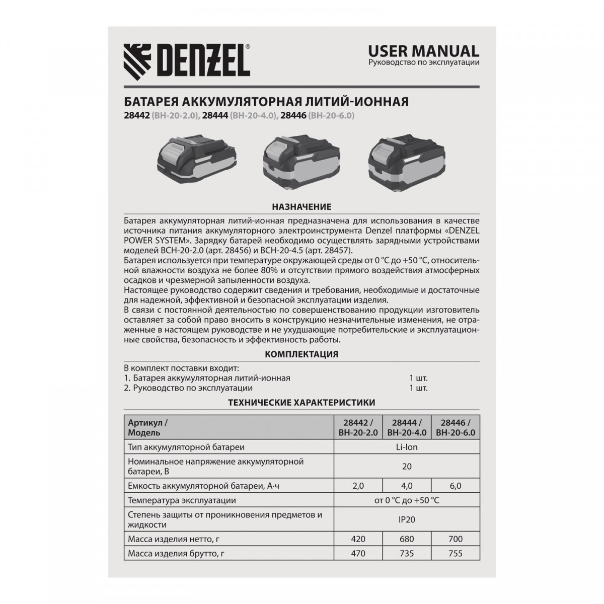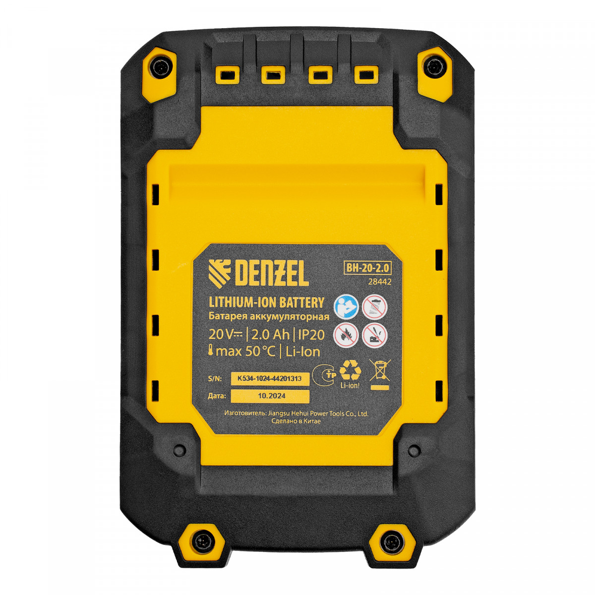 Батарея Li-Ion Denzel BH-20-2.0 28442 номинальным напряжением 20 В и емкостью 2,0 А·ч обеспечивает работоспособность аккумуляторного инструмента. Подходит для всех инструментов единой платформы Denzel Power System 20V.