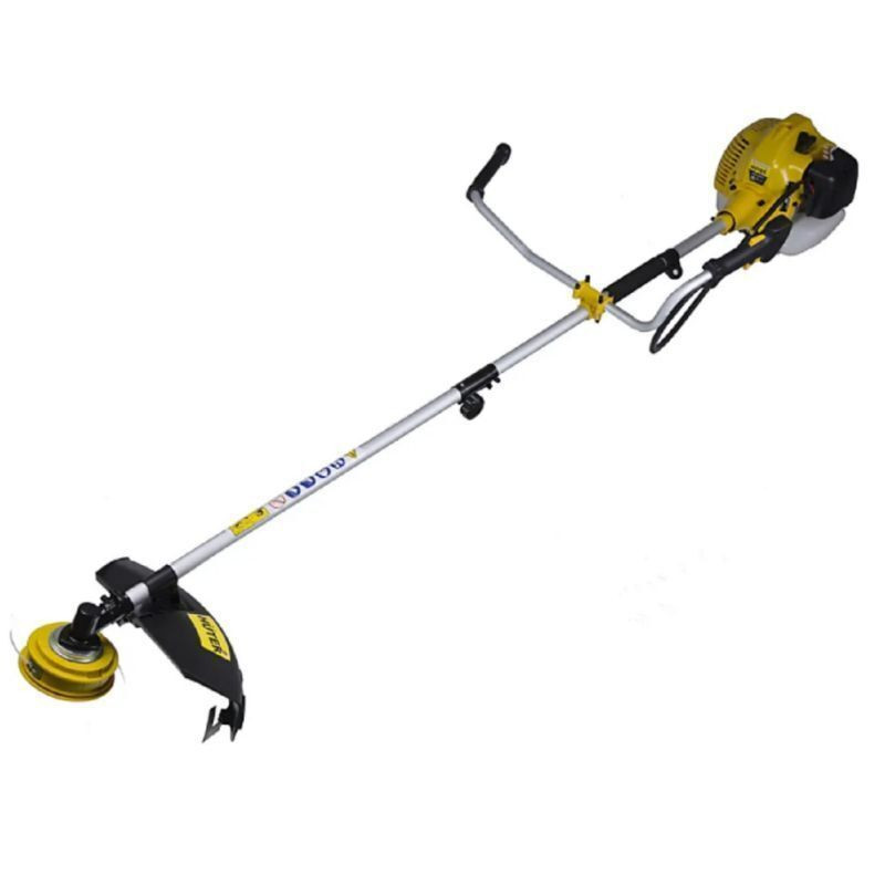 Бензиновый триммер имеет стандартную антивибрационную систему и крепится ранцевым ремнём, что позволяет проводить работы в течение длительного времени. В комплекте идут защитные очки.