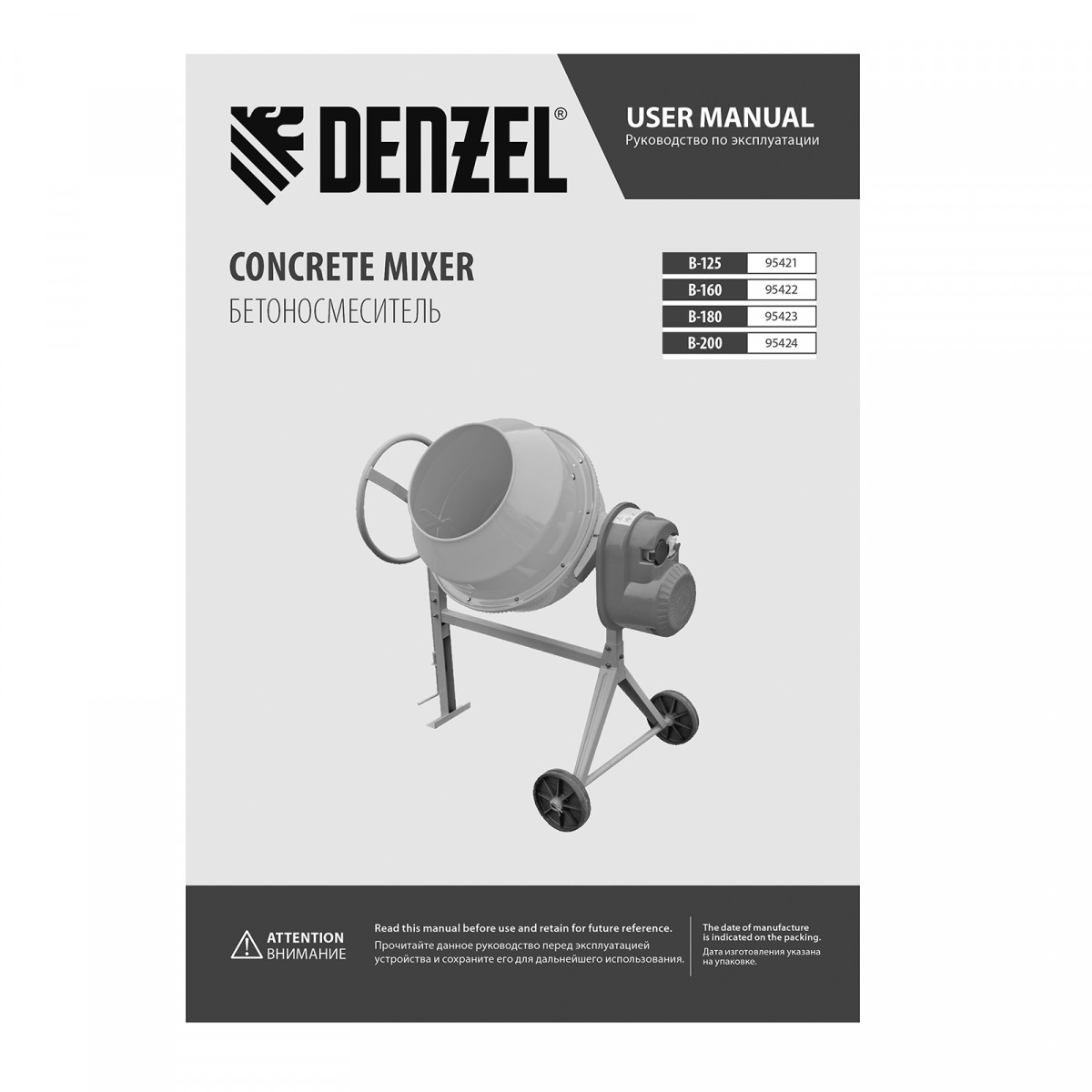 Бетоносмеситель B-160, 700 Вт, 160 л Denzel