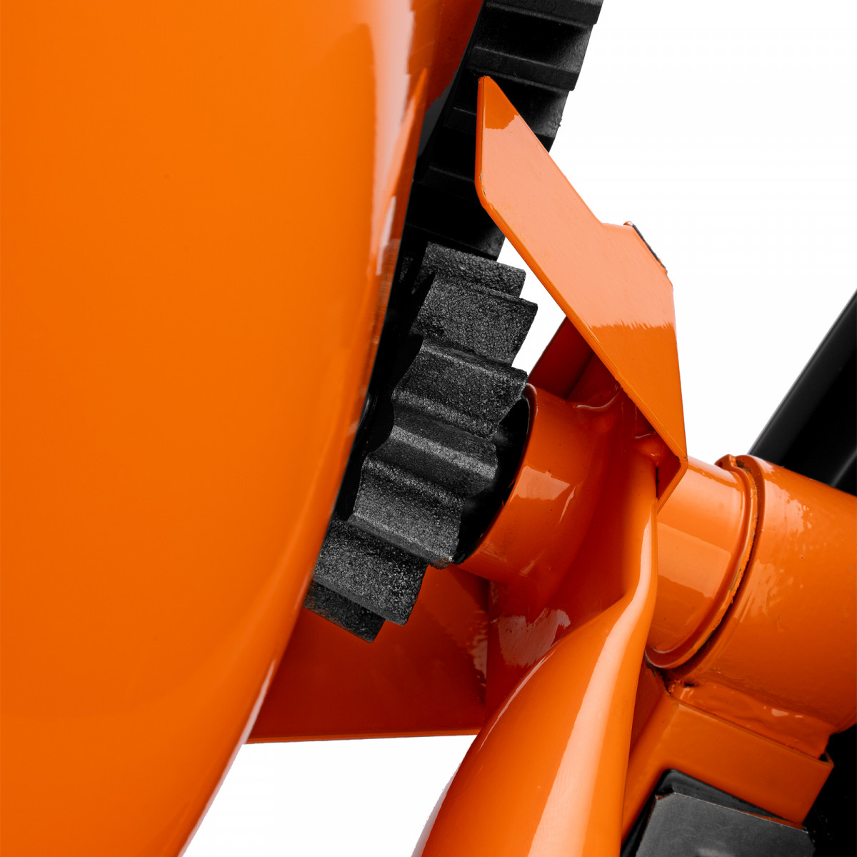 • Удобная загрузка и выгрузка смеси — барабан легко фиксируется в наклонном положении при помощи педали.