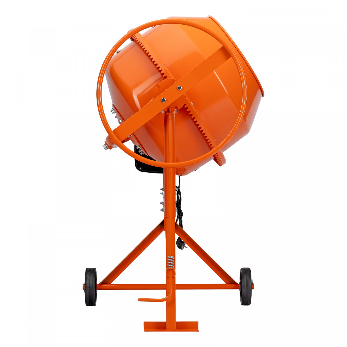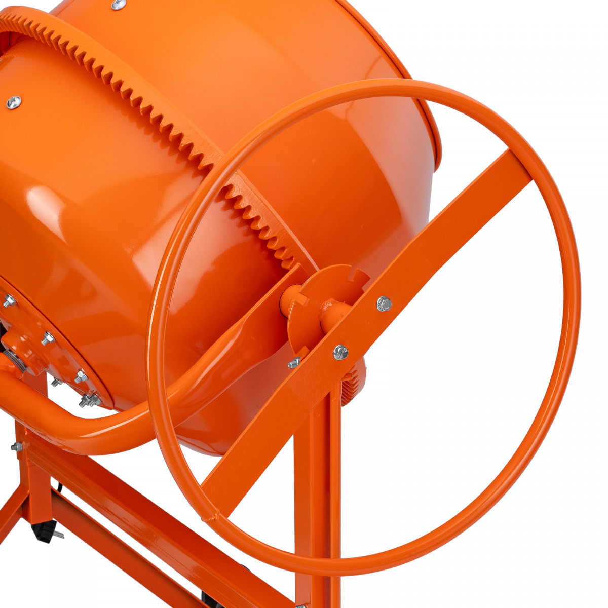 • Удобная загрузка и выгрузка смеси — барабан наклоняется при помощи маховика и легко фиксируется в нужном положении.