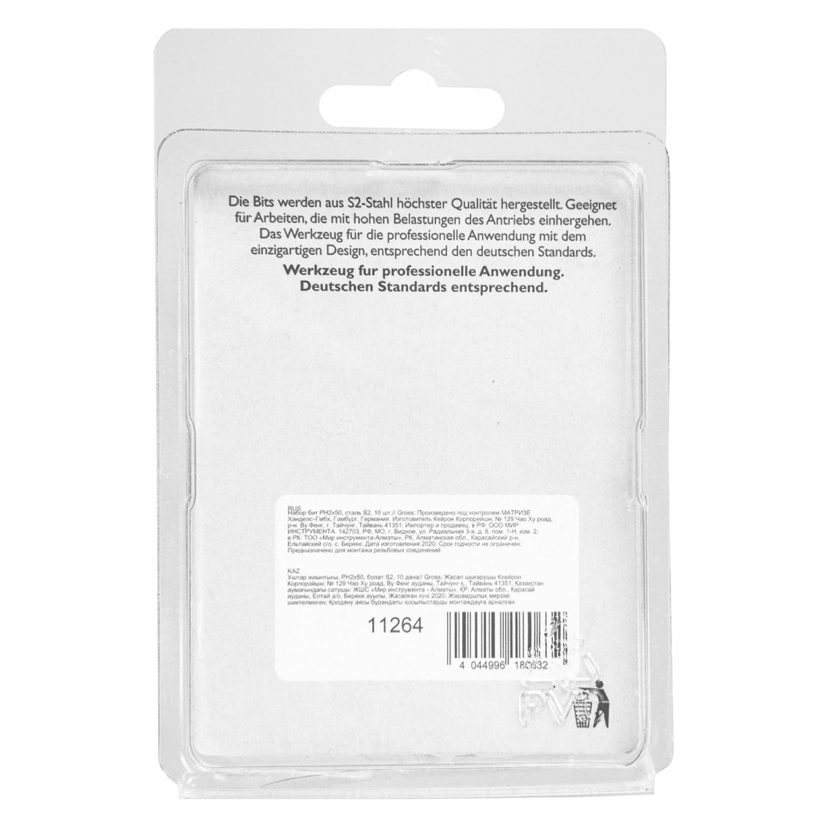 Набор односторонних бит Gross PH2x50 11264 из стали S2 состоит из 10 сменных насадок с крестообразными шлицами и шестигранными хвостовиками 1/4", рассчитанными на работу с шуруповертом. Профессиональная оснастка обеспечивает быстрый монтаж и демонтаж резьбовых соединений со шлицами PH2.