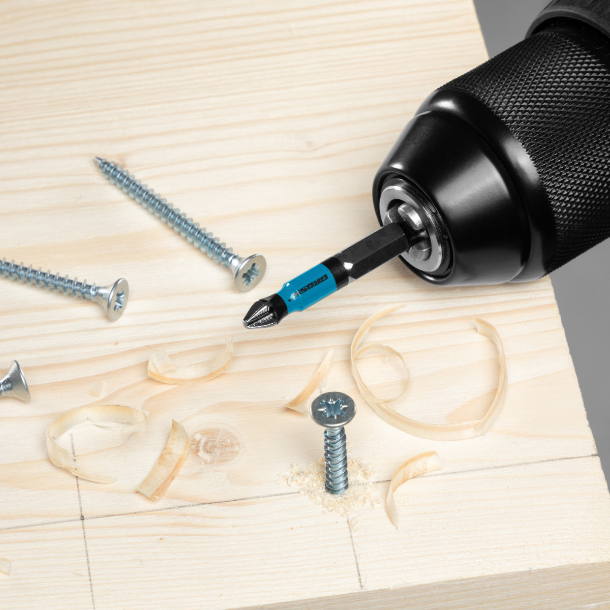 • Комфортная и эффективная работа — насечки на шлице препятствуют проскальзыванию и «слизыванию» бит, дополнительно усиливают контроль при работе с саморезами по дереву, такое решение значительно увеличивает срок службы насадок.