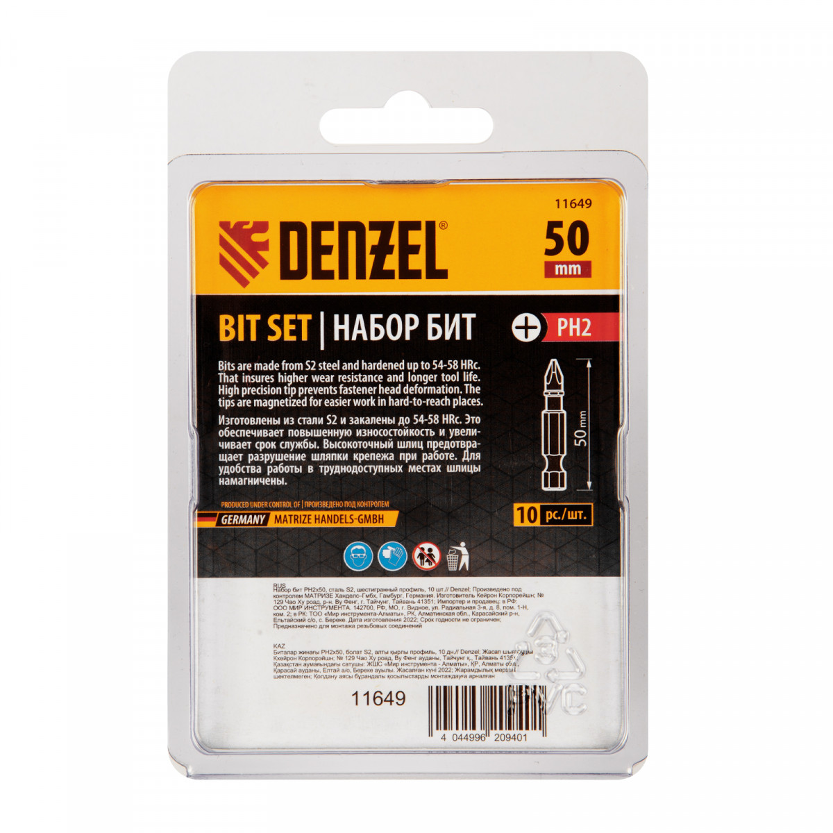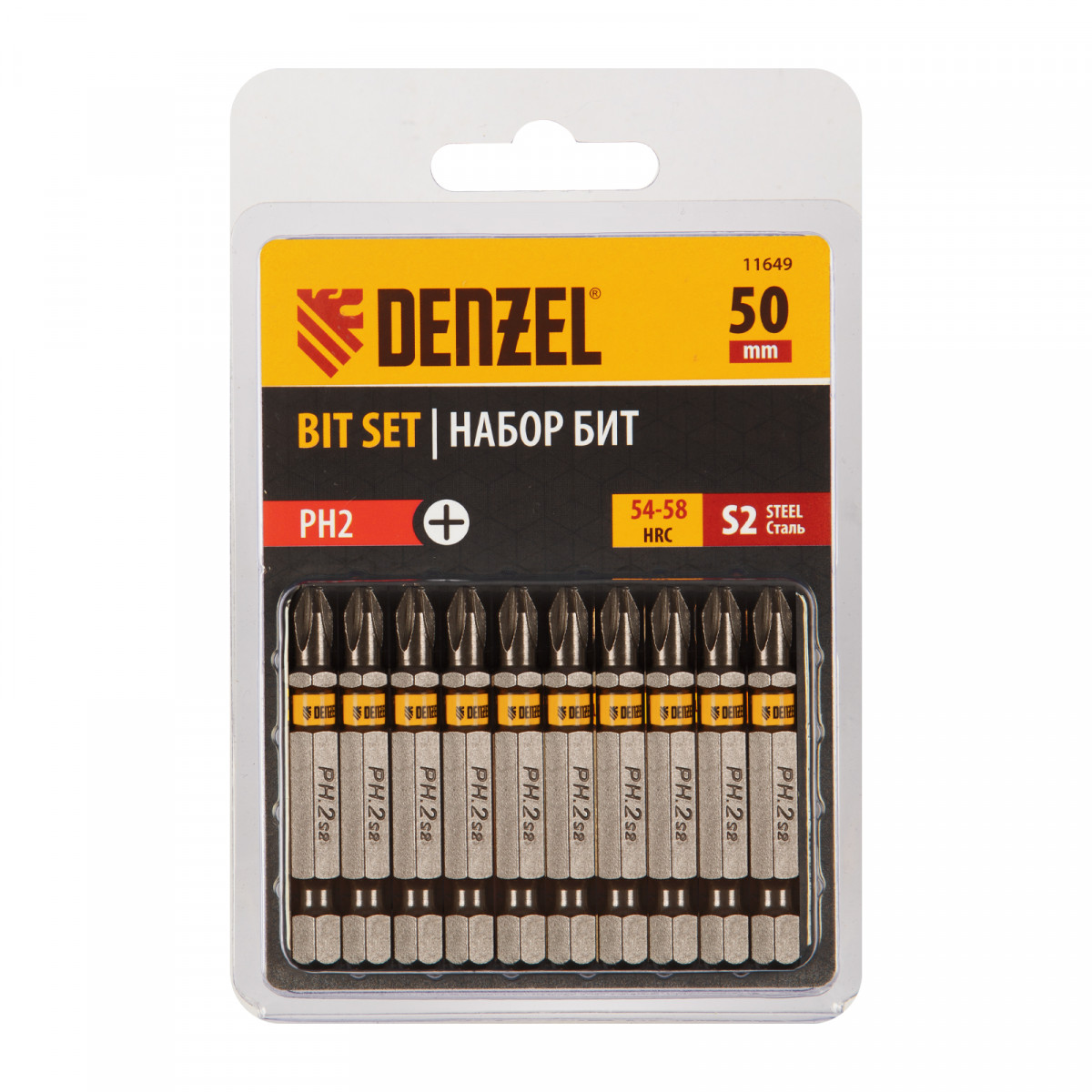 Бита PH2х50, сталь S2, шестигранный профиль, 10 шт. Е 6,3 Denzel