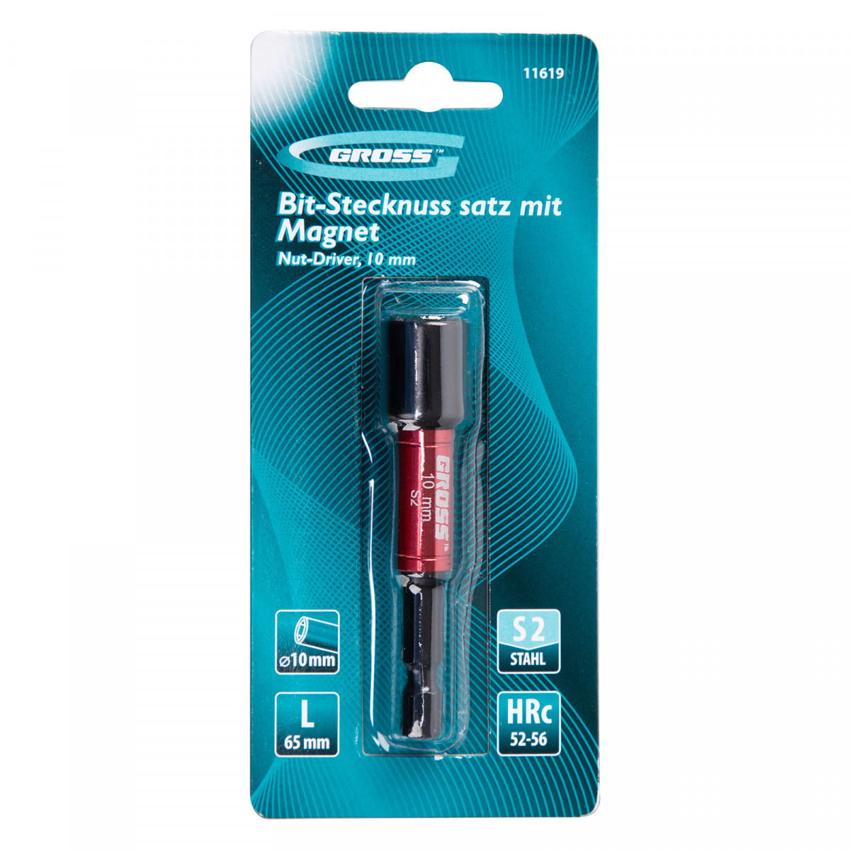 Бита с торцевой головкой, магнит. Nut-Driver, 10 мм, S2 Gross