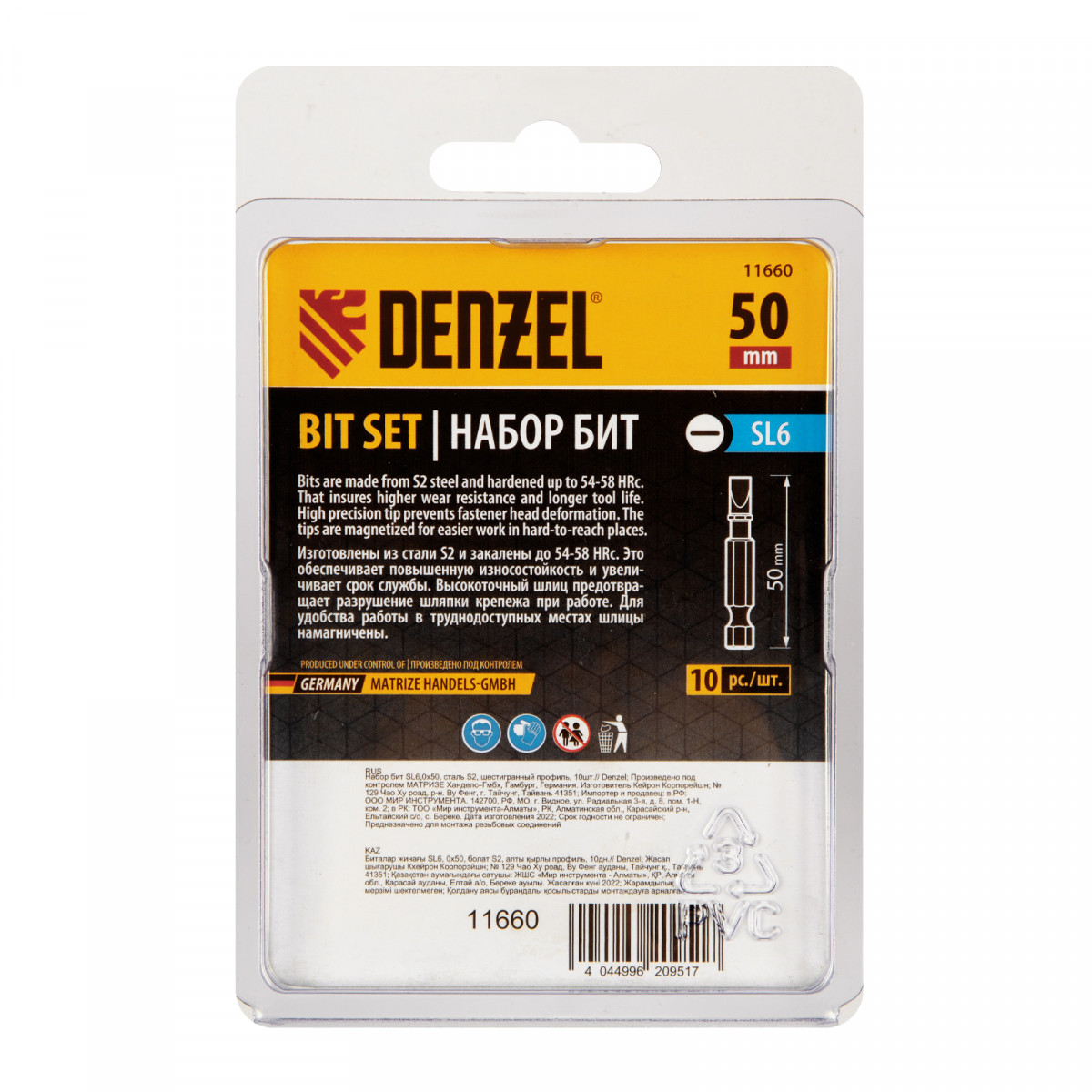 Бита SL6,0х50, сталь S2, шестигранный профиль, 10 шт. Е 6,3 Denzel
