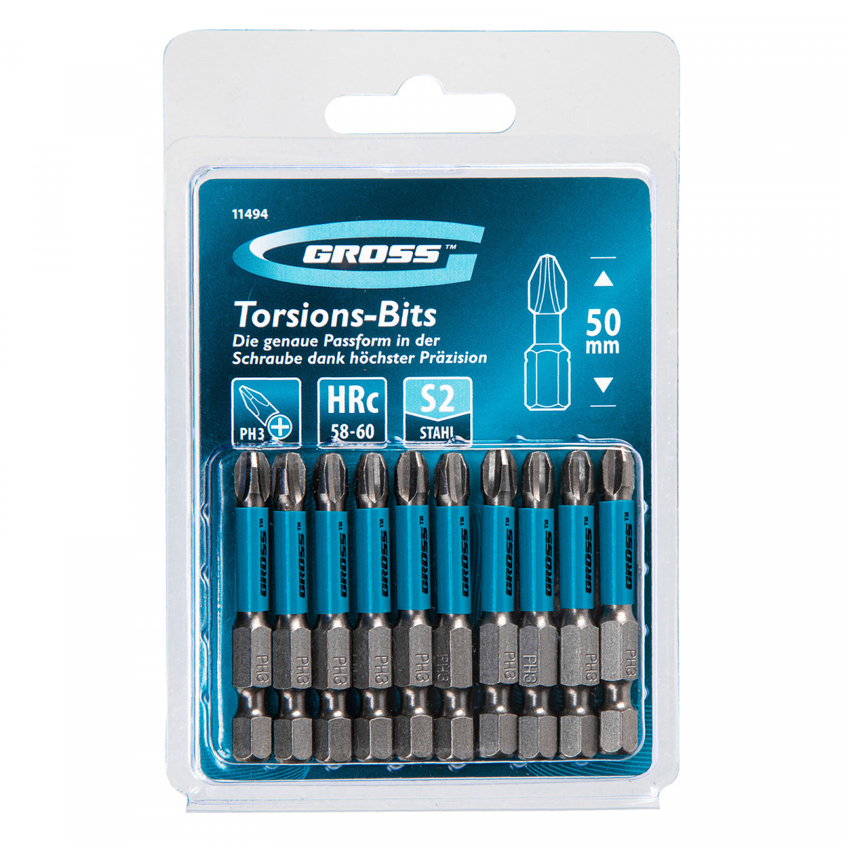 Бита торсионная PH3 x 50 мм, для ударных шуруповертов, 10 шт. Gross