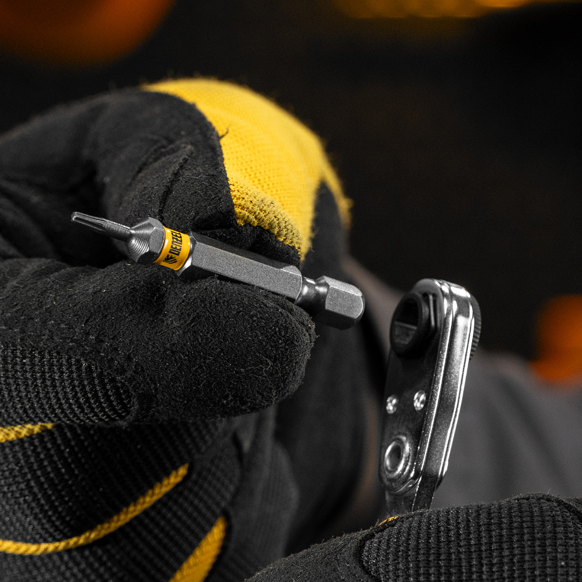 • Каждая бита защищена от подделок — об этом свидетельствует цветное кольцо с логотипом ТМ Denzel.