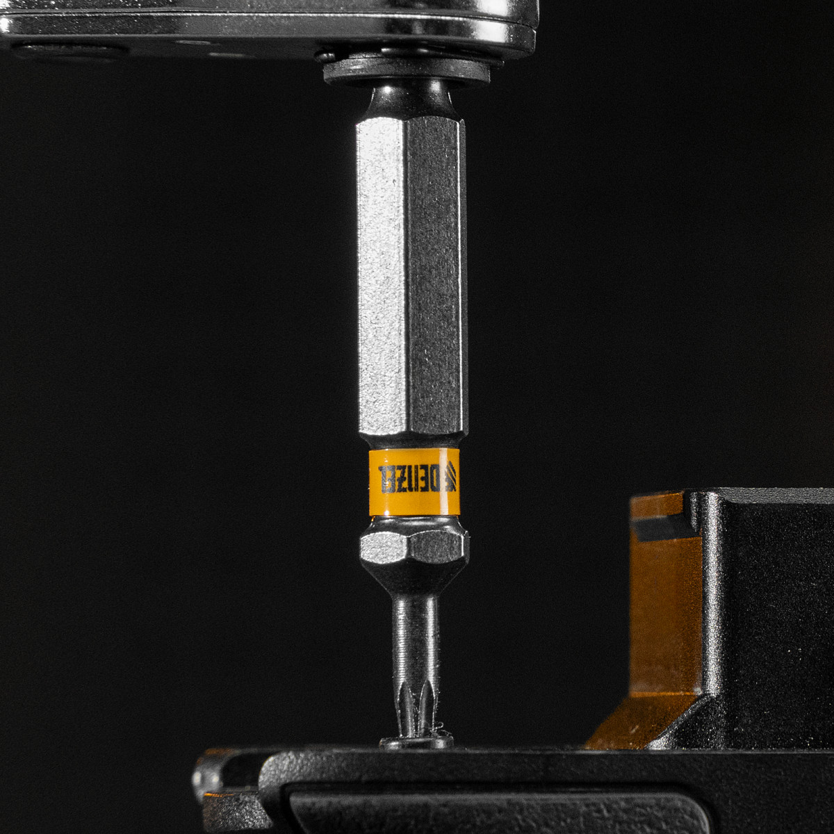 - Долговечность и надежность — биты сделаны из японской легированной стали S2 и закалены до твердости 58 HRC, поэтому устойчивы к высоким нагрузкам.