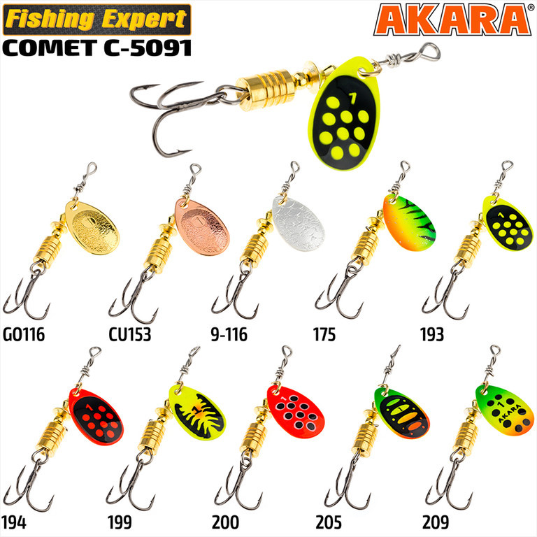 Comet - классическая вертушка со средним углом атаки, небольшие веса отлично зарекомендовали себя при ловле рыбы на ультра-лайт, большие веса вне конкуренции при ловле щуки.