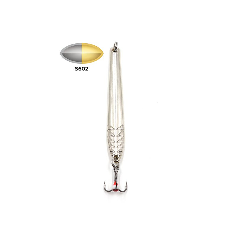 Это серия колебалок, которые предназначены для подледной ловли. Среди модификаций есть варианты для охоты окуневой и щучьей, а также судаковой.У блесны узкая вытянутая пластина, в лицевой части чуть изогнутая. Такая форма обуславливает соблазнительную выразительную игру: приманка красиво покачивается и отклоняется в сторону от вертикали на подбросах различной интенсивности. Блестящая поверхность пластины при попадании света заманчиво бликует. Спереди в нижней части есть фигурное рифление.Оснащаются данные блесны Namazu Lizard острозаточенным тройником, который дополнен разноцветным наплывом со стразом. Броская деталь сможет стать решающим фактором, что побудит заторможенного в холодной воде хищника на поклевку.