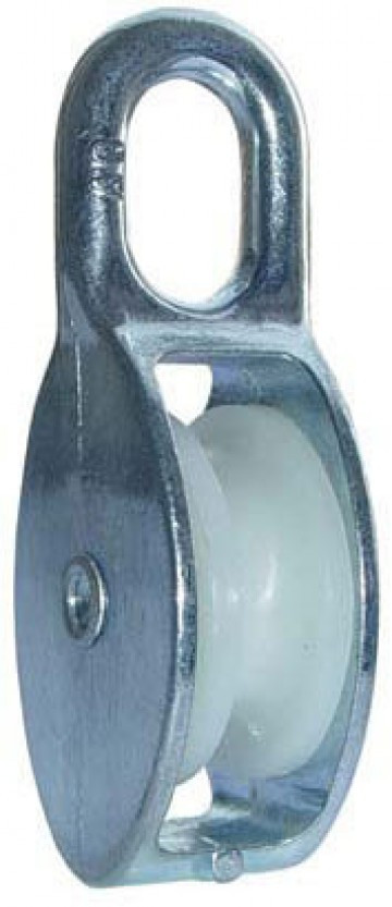 Одинарные блоки с нейлоновым шкивом служат для изменения направления движения неметаллических канатов mrFix и увеличения силы грузоподъемного оборудования (талях и подъемных кранах).