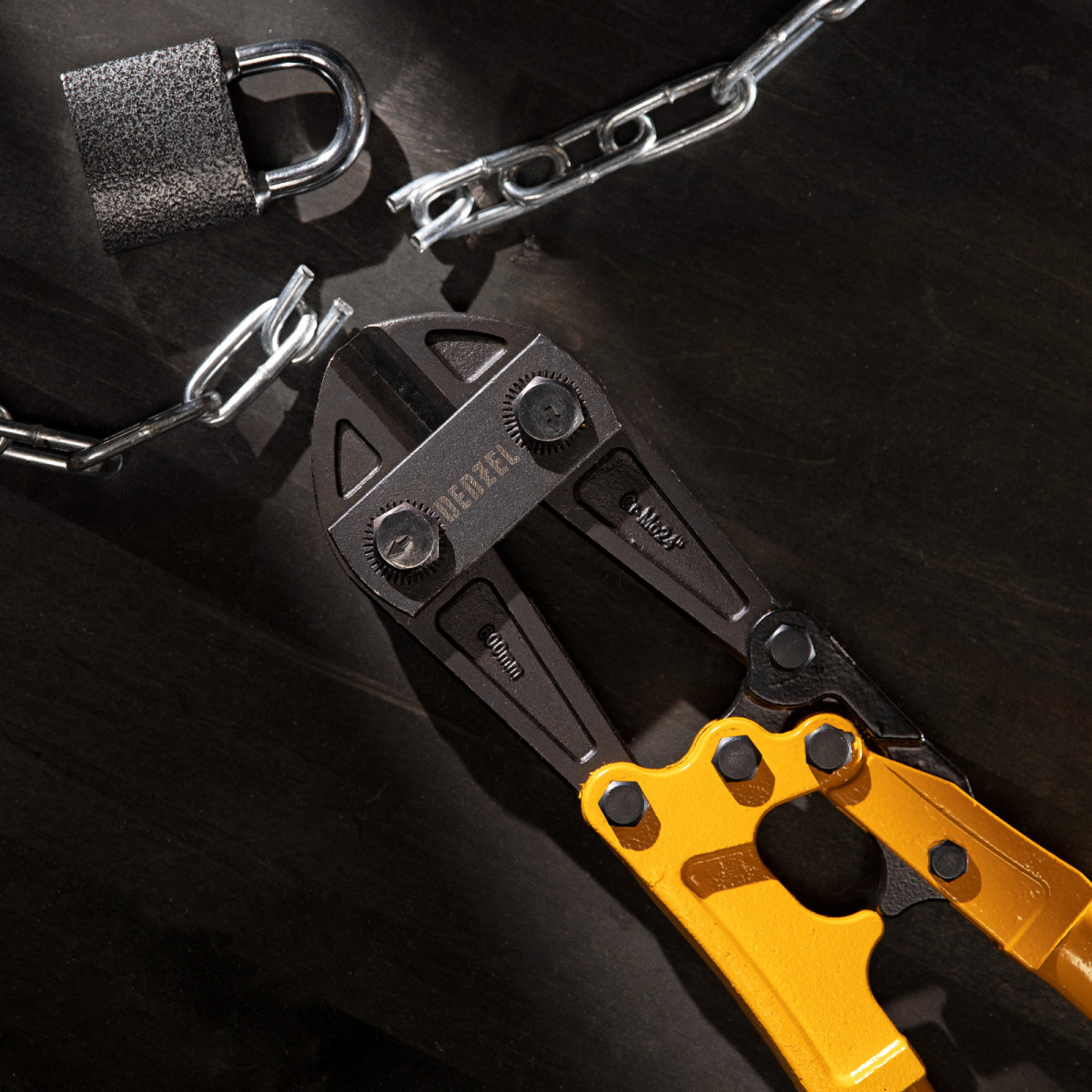 Болторез Denzel 78536 длиной 600 мм (24 дюймов), из стали Cr-Mo, предназначен для перекусывания стальных прутков диаметром 9,5 мм, болтов и шурупов, тросов, разнородной проволоки.