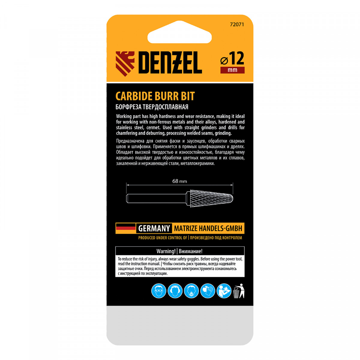 Борфреза по металлу твердосплавная, коническая закругленная, тип-L, 12 мм Denzel