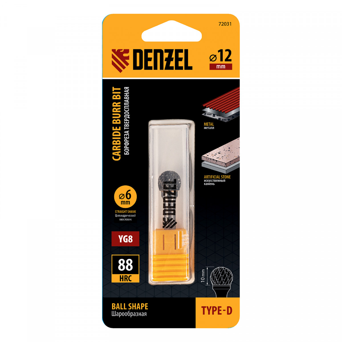 Твердосплавная борфреза Denzel 72031 с шарообразной рабочей частью (тип D), диаметром 12 мм, предназначена для шлифовальных работ по металлу. Используется для обработки закаленной и нержавеющей стали, чугуна, титана, латуни, меди, бронзы. Подходит для шлифовки искусственного камня и металлокерамики. Режущая часть в форме сферы особенно удобна для обработки радиусных пазов и внутренних отверстий. Также борфреза позволяет удалять заусенцы и возвращать первоначальный вид гравировке. Оснастка устанавливается на дрель или прямошлифовальную машину.