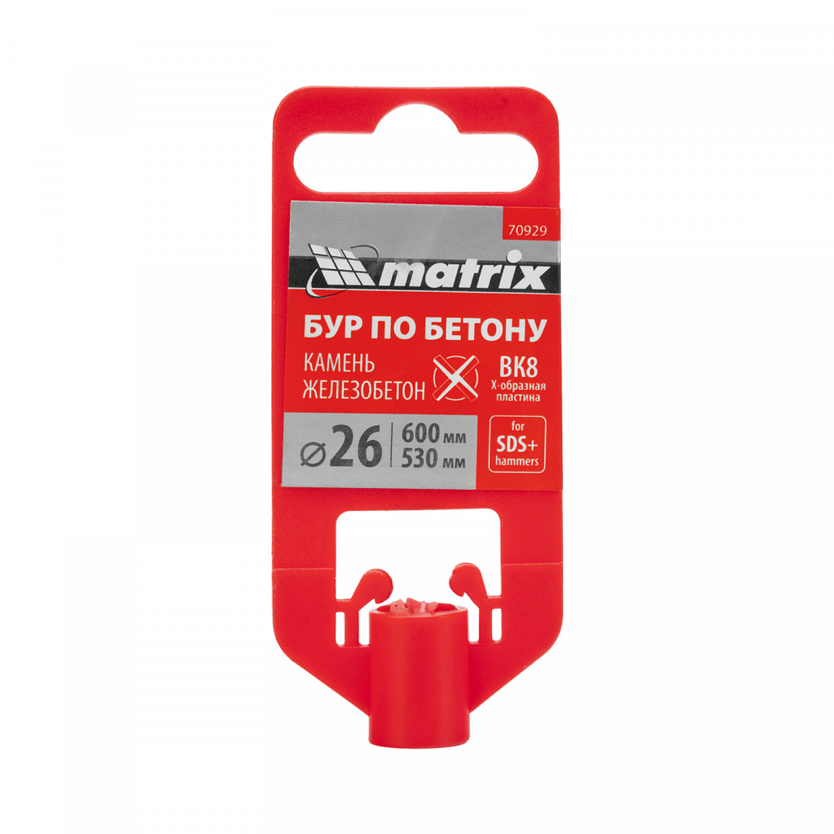 Бур по бетону Matrix 70929 длиной 600 мм, с хвостовиком SDS-plus и крестовой пластиной, предназначен для получения отверстий диаметром 26 мм в бетоне, камне и кирпиче. Крестовая пластина обеспечивает эффективную работу с твердыми материалами, в том числе армированным бетоном. Бур устанавливается в патрон перфоратора и используется во время проведения строительных работ.
