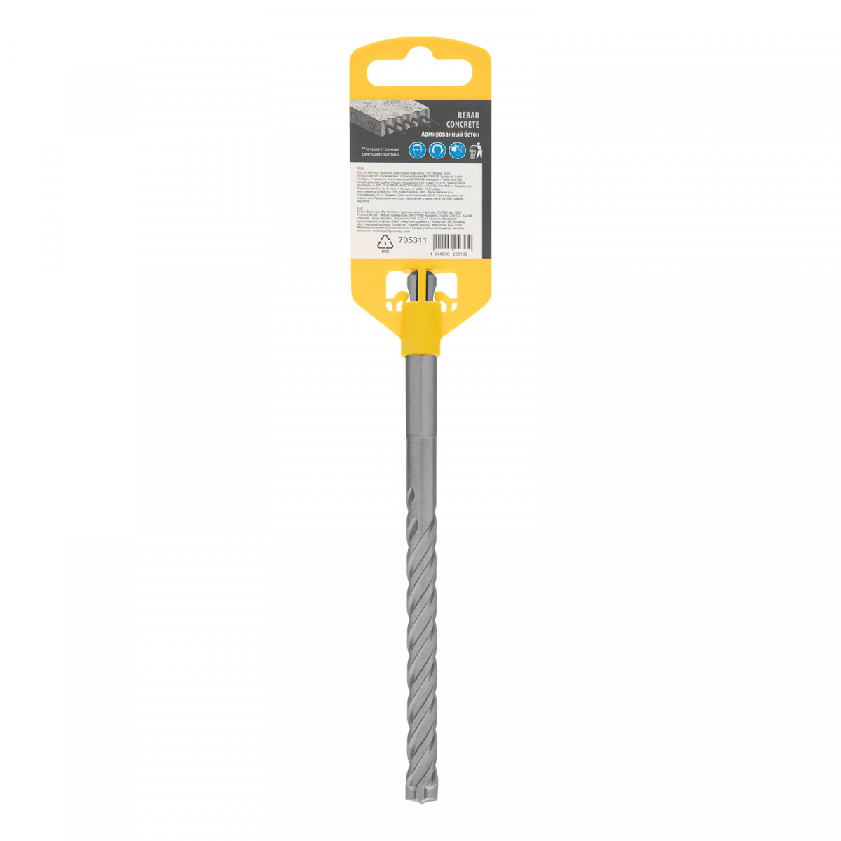 Бур по бетону Denzel 705311 длиной 165 мм, с цельной крестовой пластиной и хвостовиком SDS-plus — оснастка для перфораторов, предназначенная для получения отверстий диаметром 10 мм в бетоне, кирпиче, камне. Благодаря цельному карбидному наконечнику с 4 режущими кромками бур оптимален для работы с материалами высокой твердости, в том числе с армированным бетоном. Оснастка превосходит большинство аналогов по своим рабочим качествам и подходит для профессионального использования.