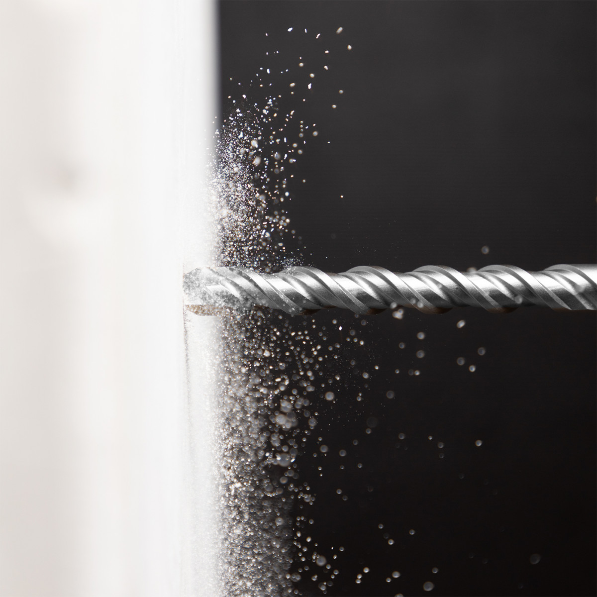 • Эффективный отвод шлама — двойная спираль и канавка с дополнительным желобом обеспечивают быстрое удаление пыли, что предотвращает перегрев рабочей части и продлевает срок службы бура.