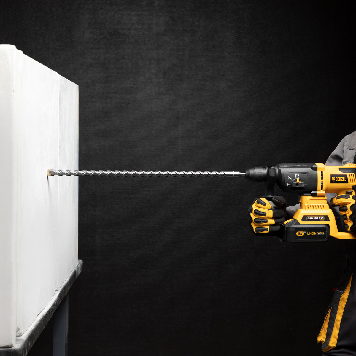 Бур по бетону, двойная спираль, три пылеотводящие кромки, 18 x 600 мм DENZEL