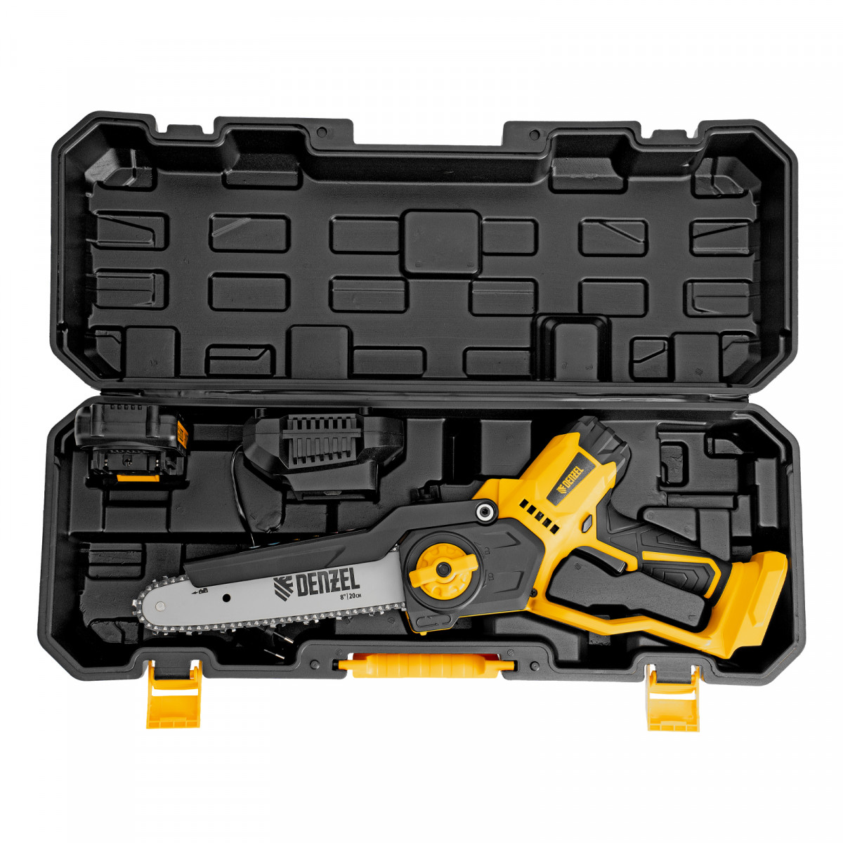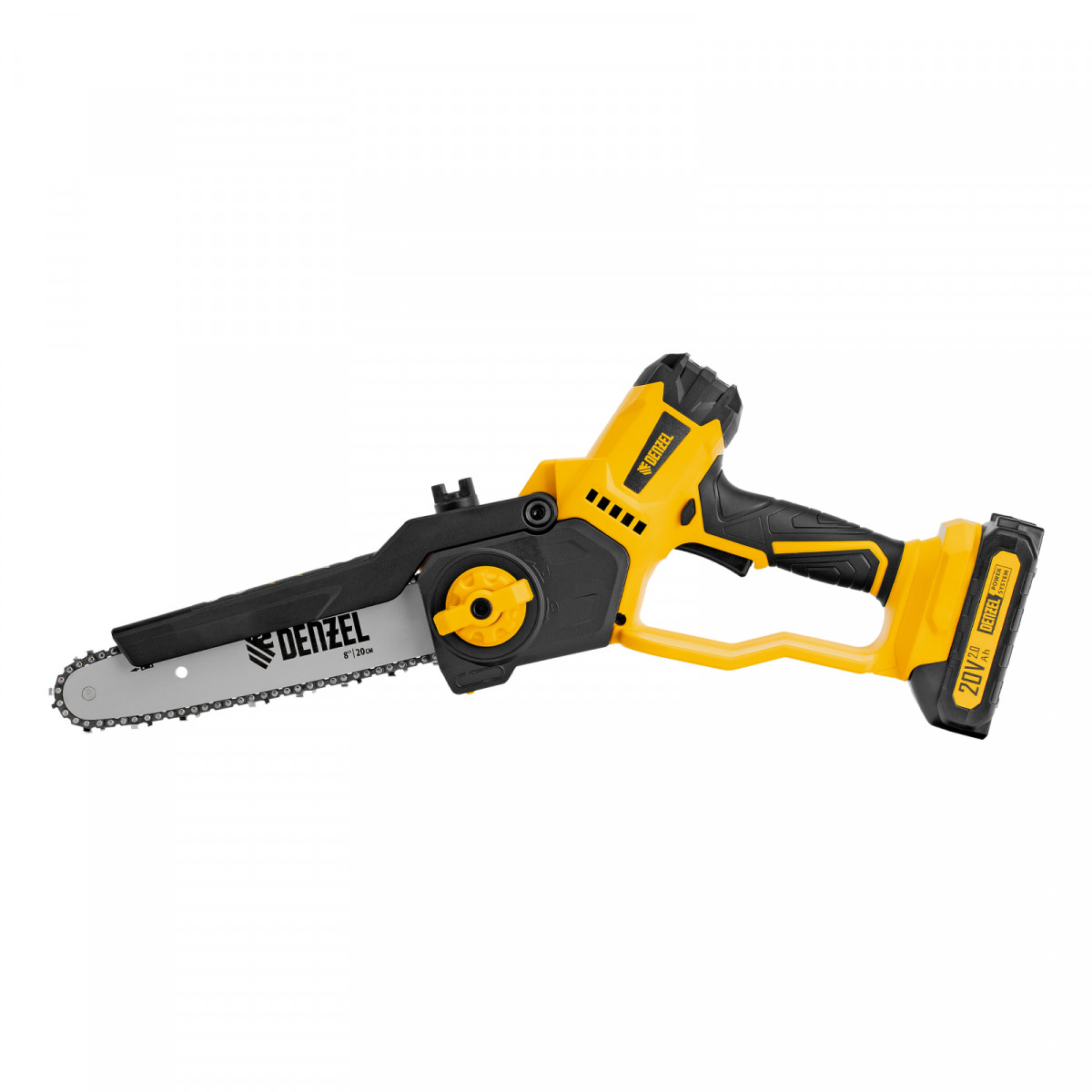 Цепная мини-пила аккумуляторная бесщет., СCS-200BL, шина 200 мм, Li-Ion, 20 В Denzel