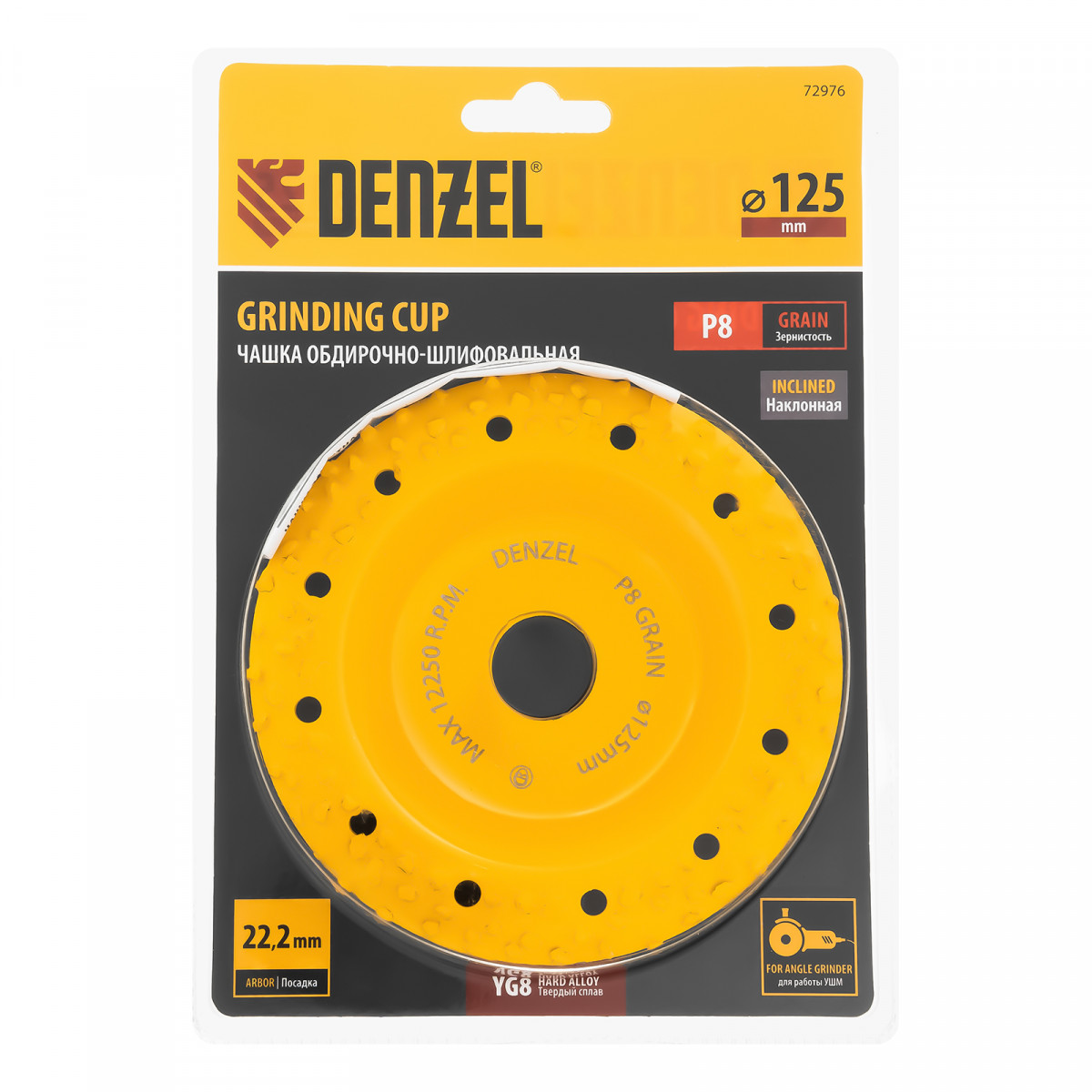Чашка твёрдосплавная зачистная,125 мм, Наклонная, крупное зерно #8 Denzel