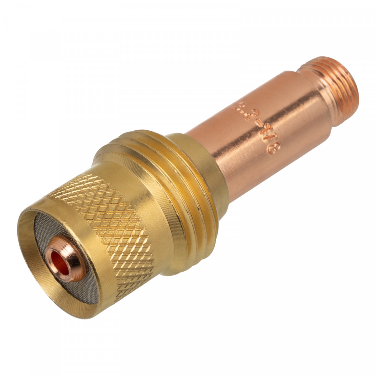 Держатель цанги Denzel 93658 входит в набор из 2 шт. и надежно фиксирует в сопле газовой горелки цангу с электродом диаметром 2,4 мм. Обеспечивает более равномерное распределение защитного газа в зоне сварки, чем при использовании стандартного цангодержателя. Используется для аргонодуговой сварки и совместим со сварочными горелками TIG 93643, 93644, а также может устанавливаться на модели других торговых марок с аналогичным посадочным разъемом.