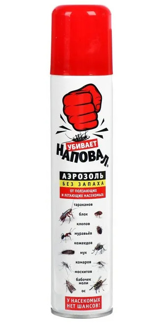 Универсальное средство для уничтожения в помещениях летающих и ползающих насекомых: тараканов, блох, клопов, муравьев, кожеедов, мух, комаров, москитов, бабочек моли, ос.
