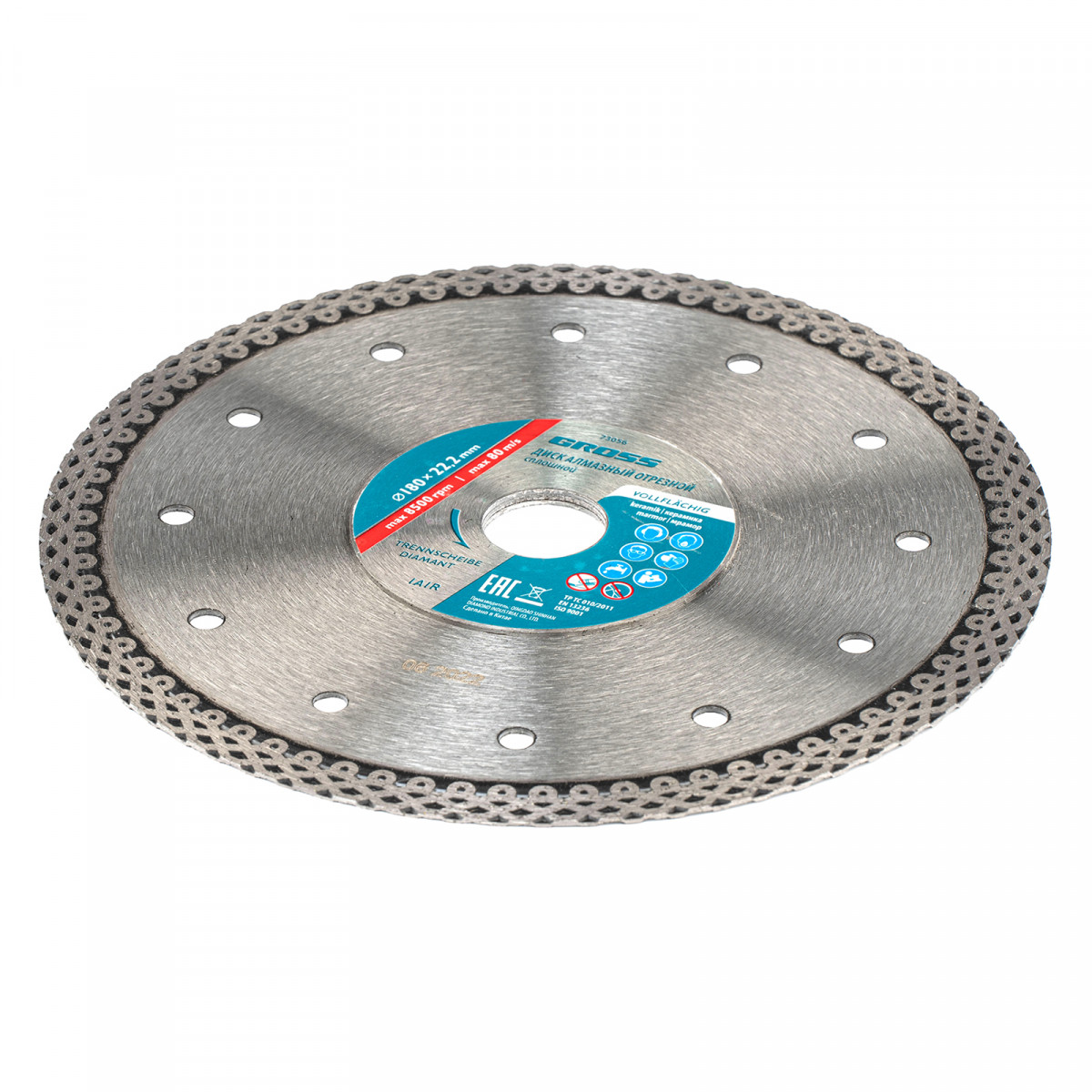 Диск алмазный, 180 х 22.2 мм, тонкий, сплошной (Jaguar) мокрая резка Gross