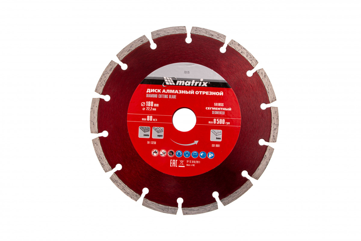 Алмазный отрезной сегментный диск Matrix 73175 диаметром 180 х 22,2 мм предназначен для сухой резки натурального и искусственного камня, кирпича, свежего и твердого бетона. Применяется с углошлифовальными машинами соответствующего типоразмера. Благодаря высокой скорости реза диск позволяет выполнять работы большого объема. Он пригодится на небольших строительных площадках и будет идеальным помощником при решении бытовых задач.