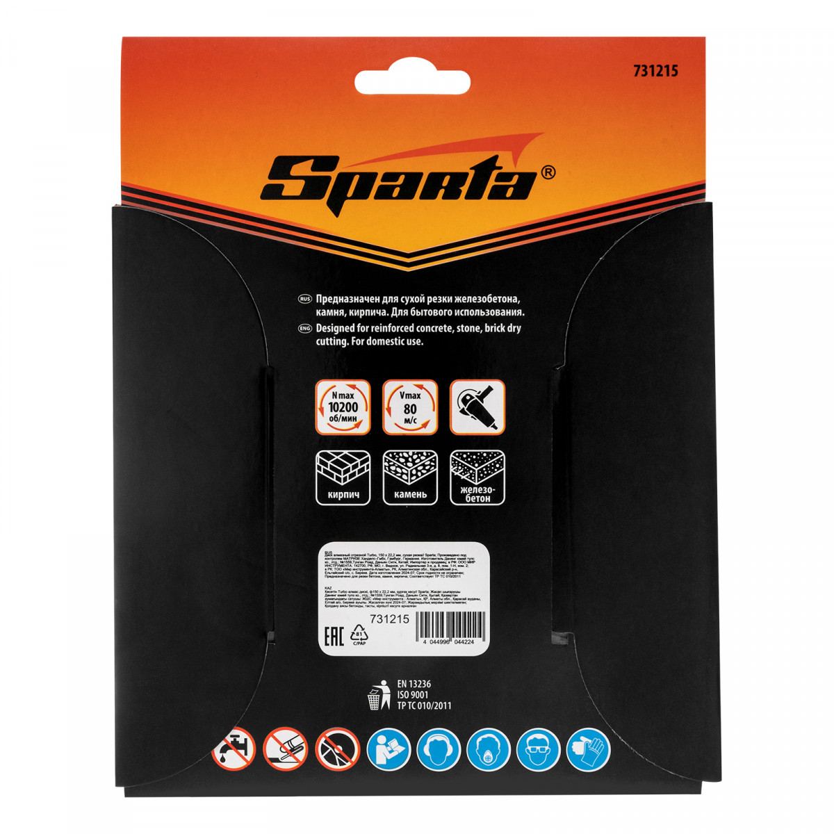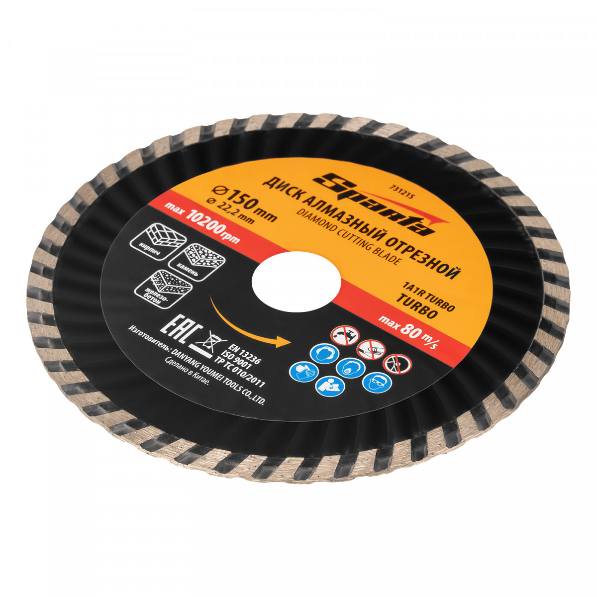 Алмазный отрезной диск Sparta Turbo 731215 для сухой резки, диаметром 150 х 22,2 мм, устанавливается на углошлифовальную машину. Позволяет резать твердые материалы: бетон, железобетон, камень, песчаник. Диск предназначен для бытового использования.