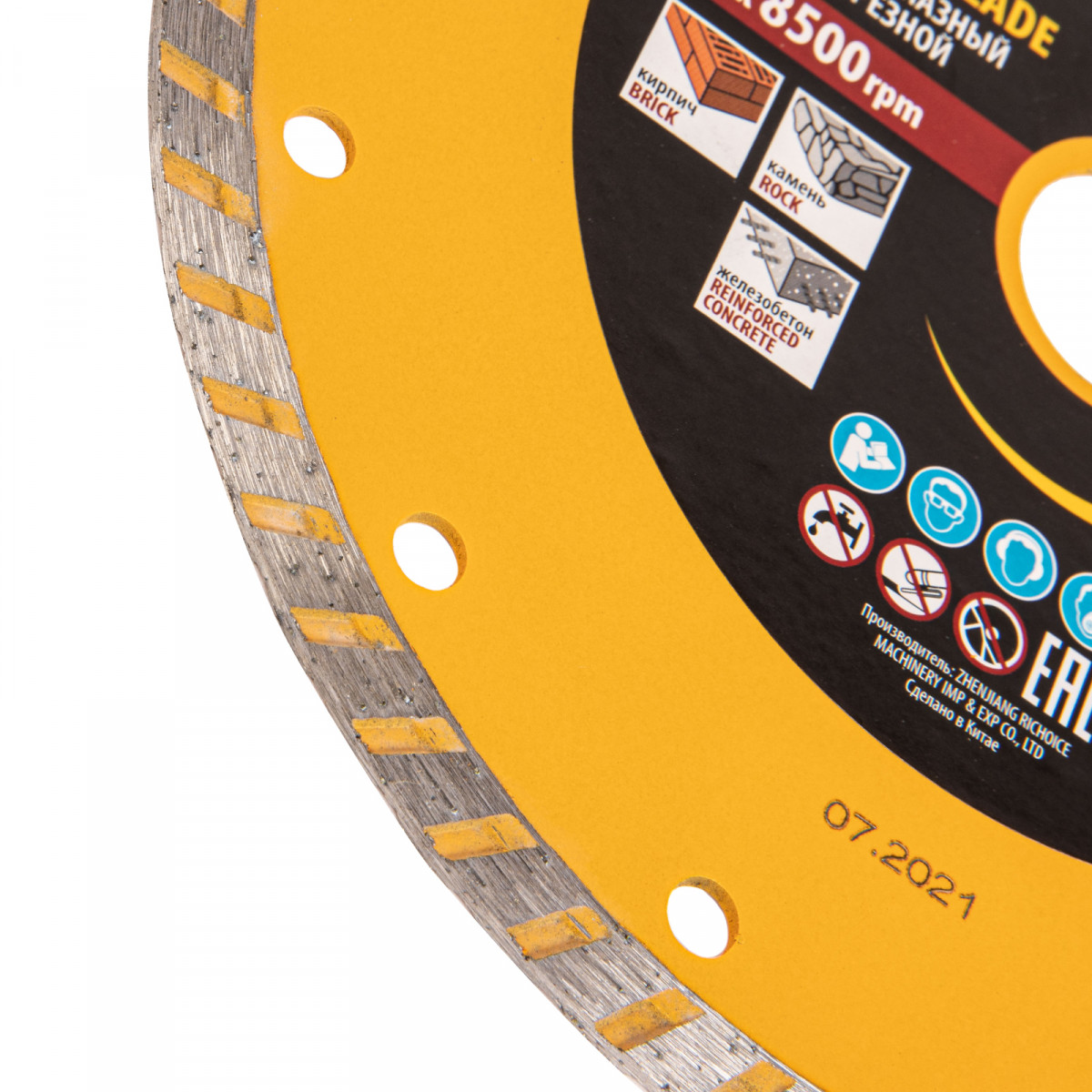 - Максимальная эффективность — турбированный диск справляется даже с резкой армированного бетона.
