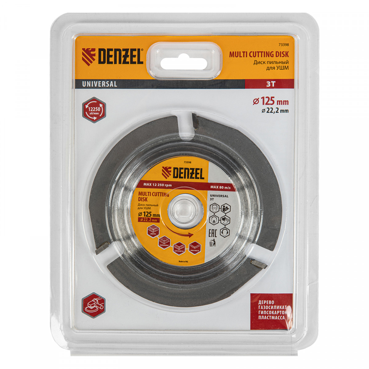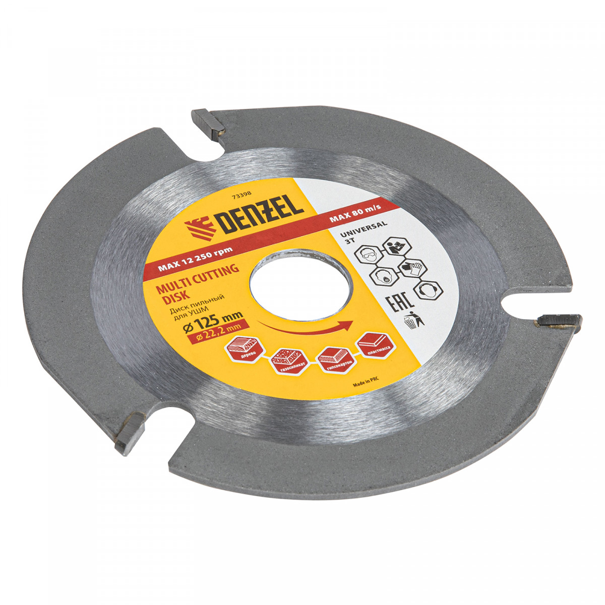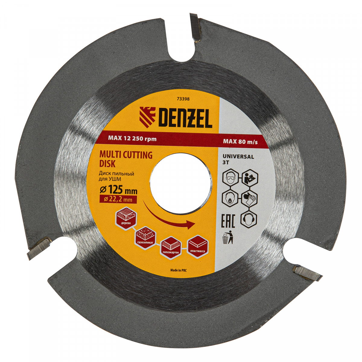 Пильный диск для УШМ Denzel Мультирез 73398 диаметром 125 х 22,2 мм, — оснастка для углошлифовальных машин, позволяющая быстро распилить древесину, тонкий пластик, гипсокартон и газосиликат. Будет полезен как профессиональному мастеру, так и домашнему умельцу. Перед эксплуатацией необходимо изучить инструкцию как диска, так и углошлифовальной машины.
