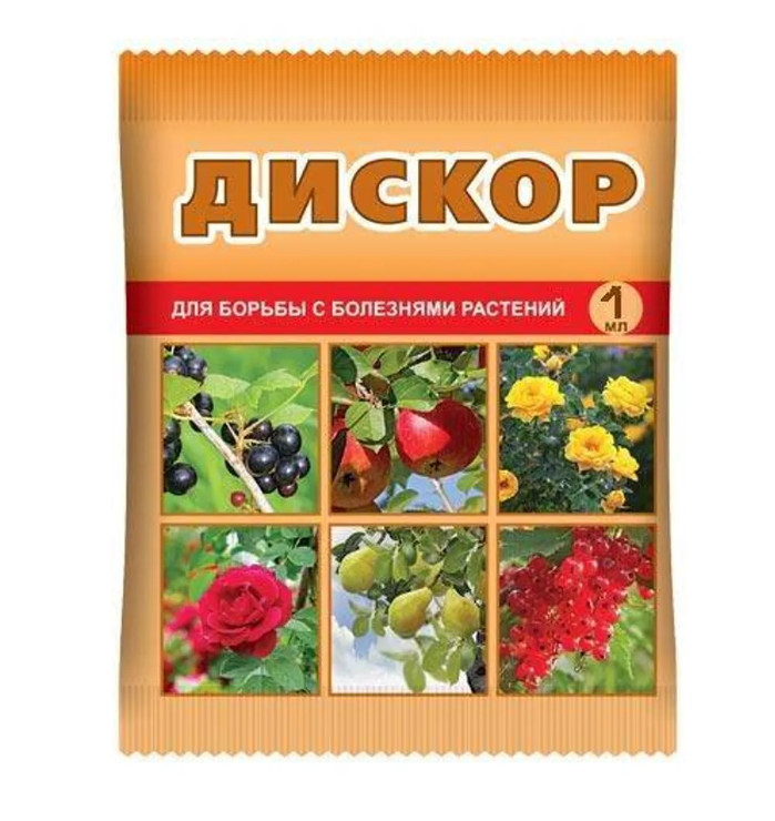 ДИСКОР - средство для защиты культур от хозяйственно значимых заболеваний — альтернариоза, парши, мучнистой росы и мн. др. Широко используется в сельском хозяйстве и ЛПХ против широкого круга фитопатогенов. Положительно влияет на растение, обеспечивает качественную закладку урожая на хранение. ДИСКОР обладает целым рядом преимуществ: обеспечивает одновременно и лечебное, и профилактическое, и иммунизирующее действие; имеет гибкие сроки применения на плодовых культурах (фазы: зелёный конус, розовый бутон, цветение, рост плодов); не вызывает образования «сетки» на плодах, а также ожогов листьев или деформаций плодов; повышает урожайность культур и их качество; препятствует развитию заболеваний при хранении плодов, обеспечивает длительное хранение урожая; действие препарата не зависит от погодных условий; доступность и лёгкость применения.