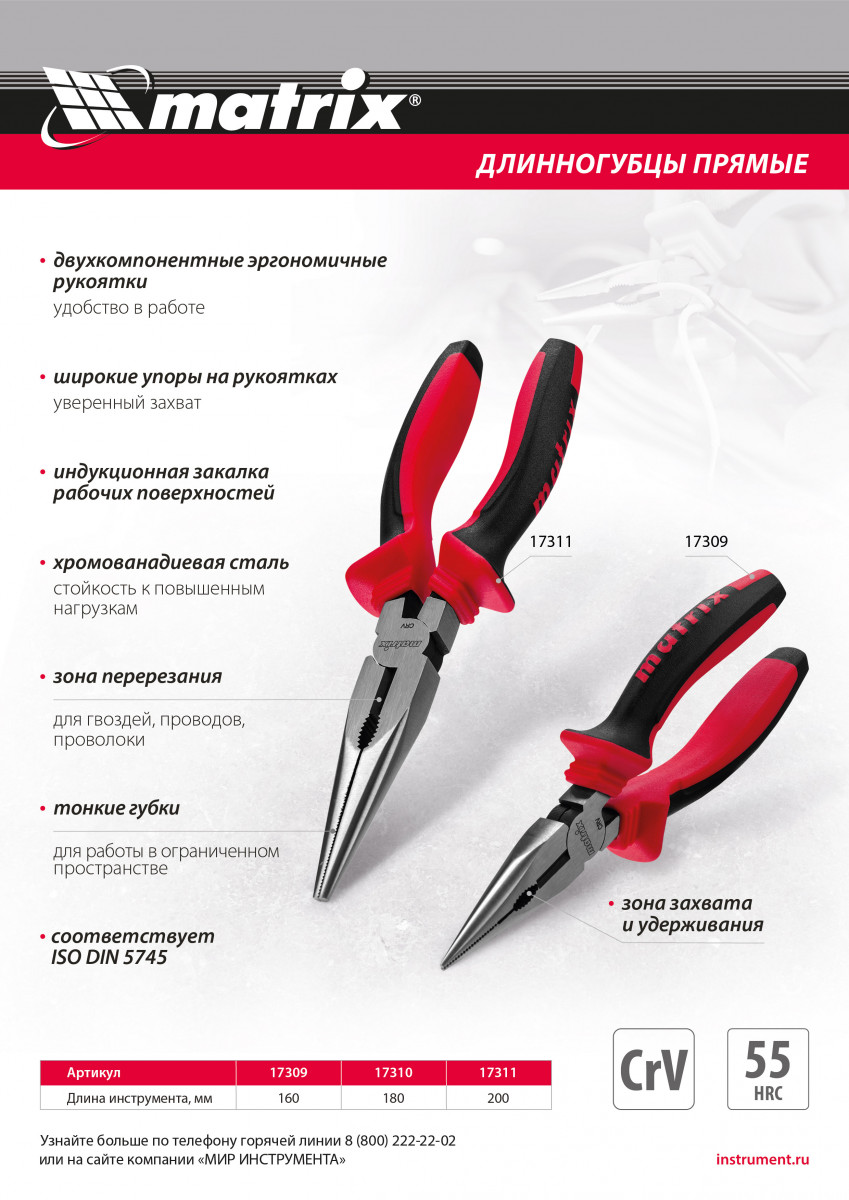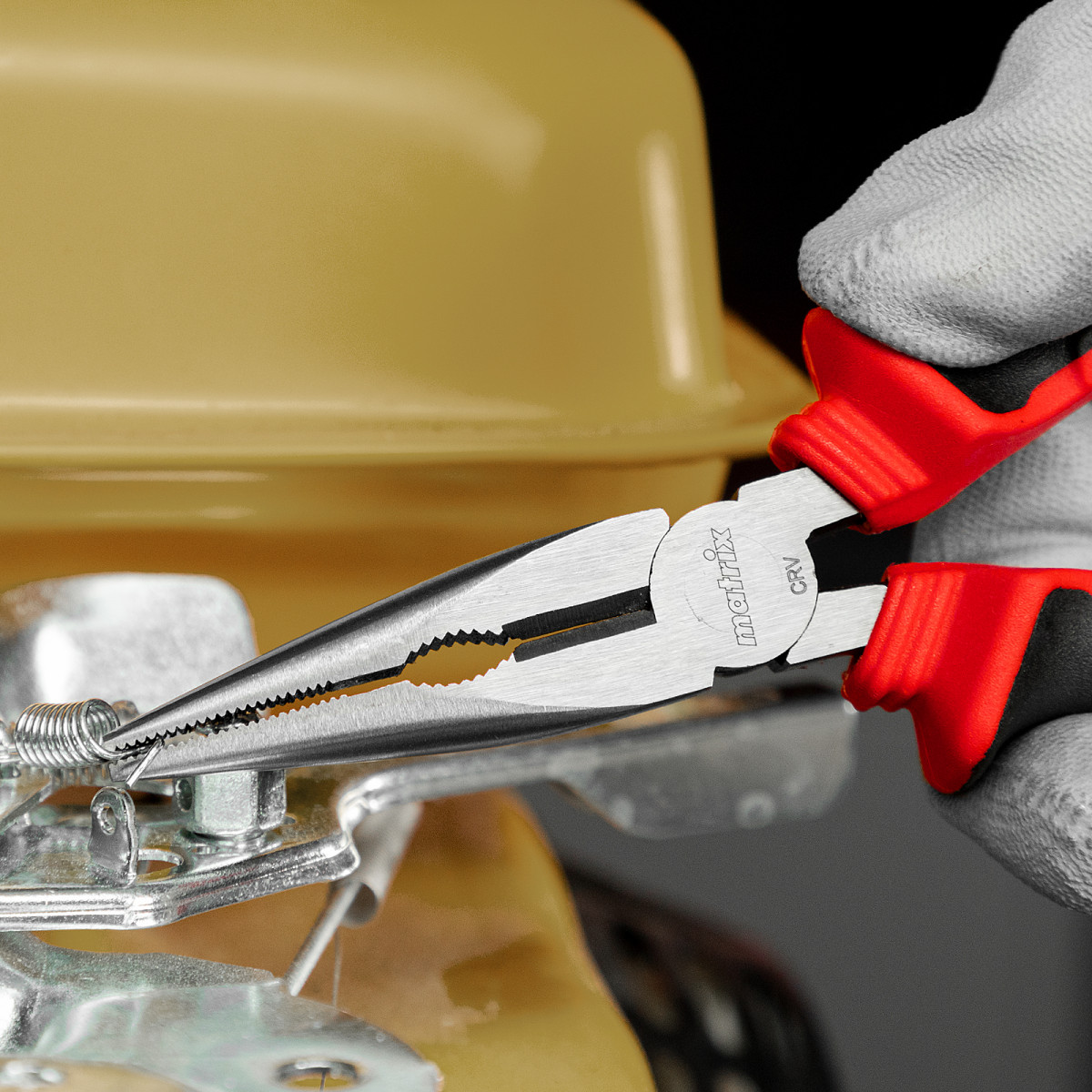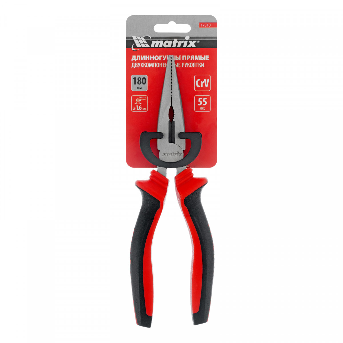 Длинногубцы прямые, 180 мм, хром-ванадий, двухкомпонентные рукоятки Matrix