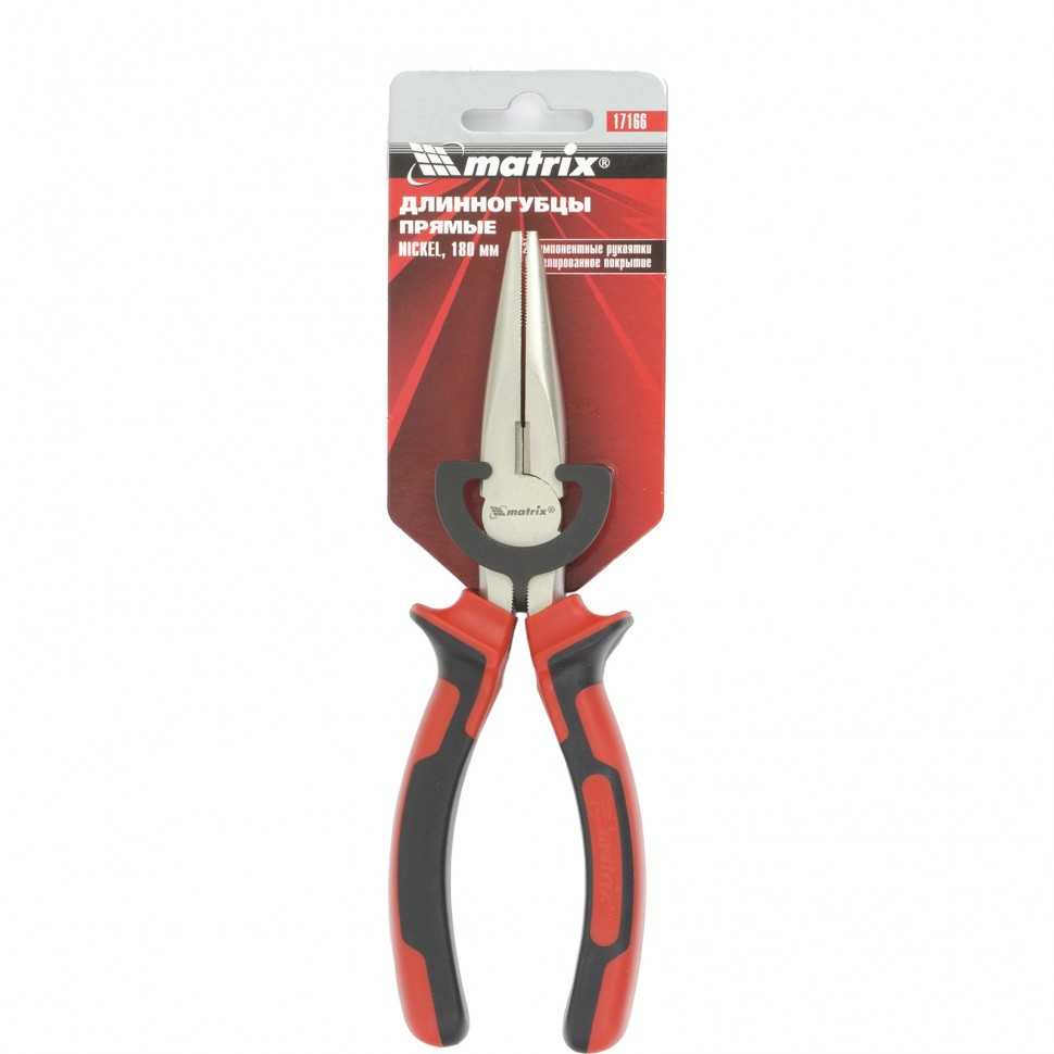 Длинногубцы прямые Nickel, 180 мм, никелированные, двухкомпонентные рукоятки Matrix