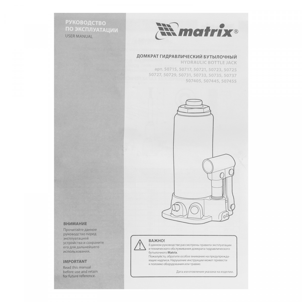 Домкрат гидравлический бутылочный Matrix 50729 используется для поднятия грузов массой до 15 т на высоту 230-460 мм. Подходит для автомобилей с высоким клиренсом. Домкрат будет полезен автолюбителям в гараже и дороге, а также сотрудникам СТО.