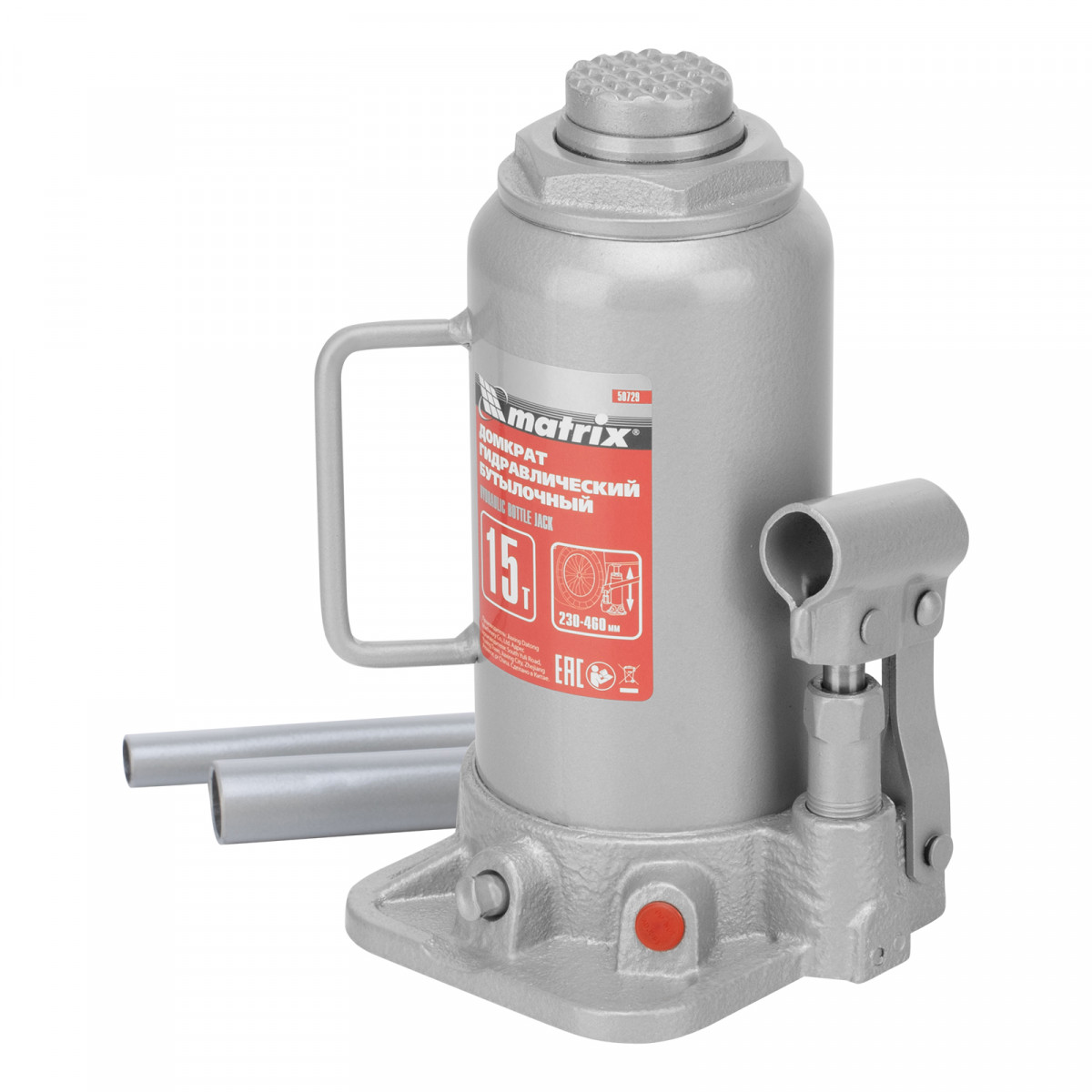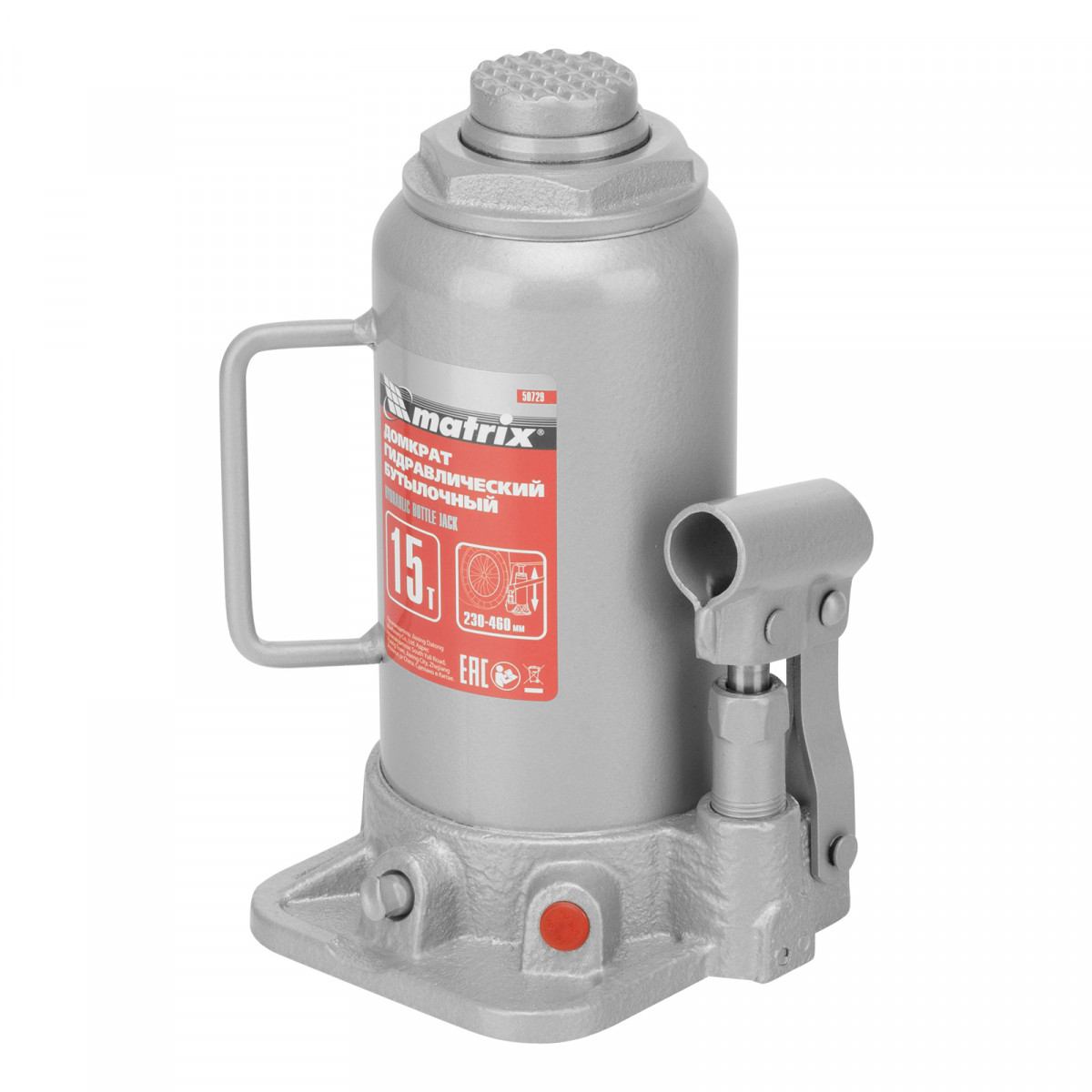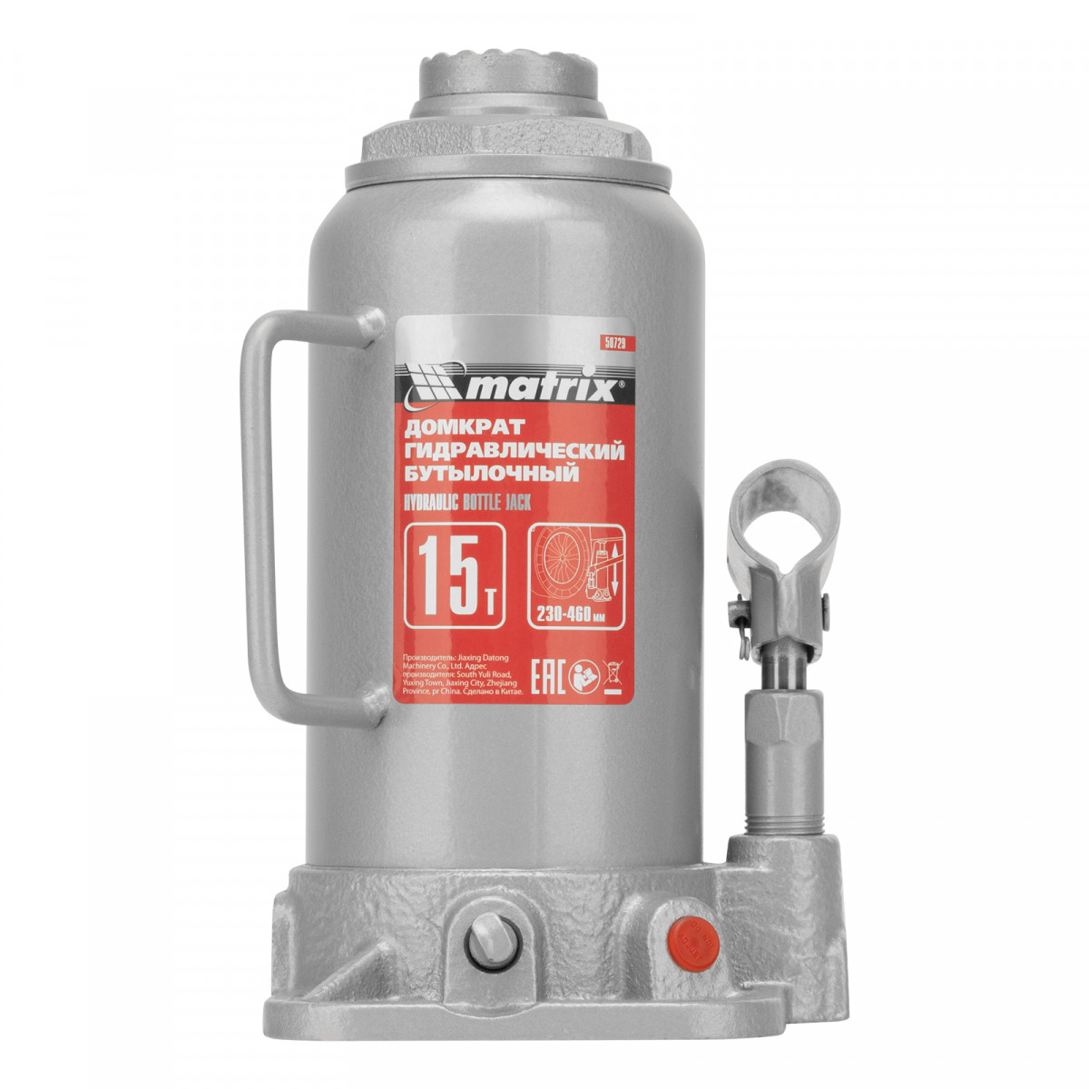 Домкрат гидравлический бутылочный, 15 т, высота подъема 230-460 мм Matrix