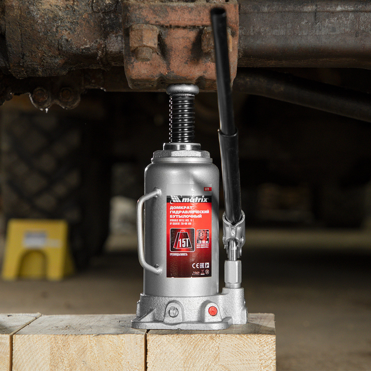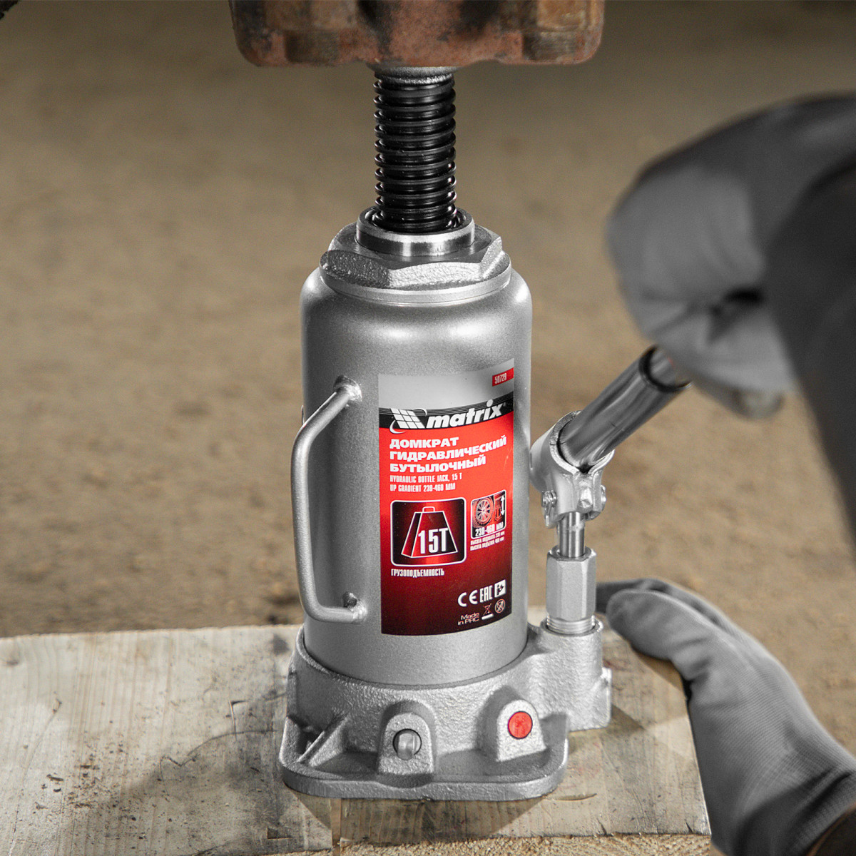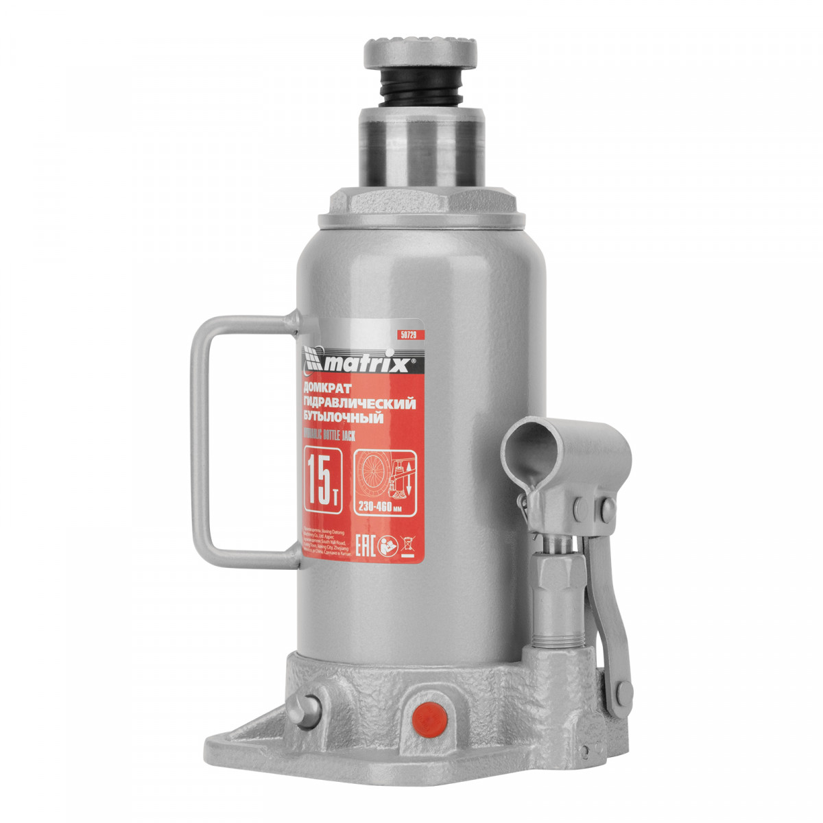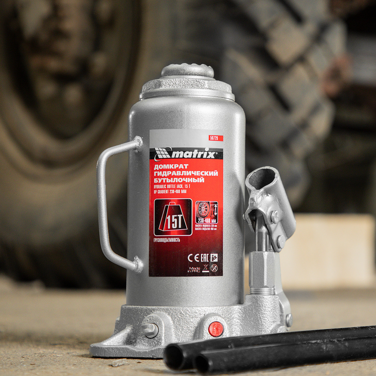 Домкрат гидравлический бутылочный, 15 т, высота подъема 230-460 мм Matrix
