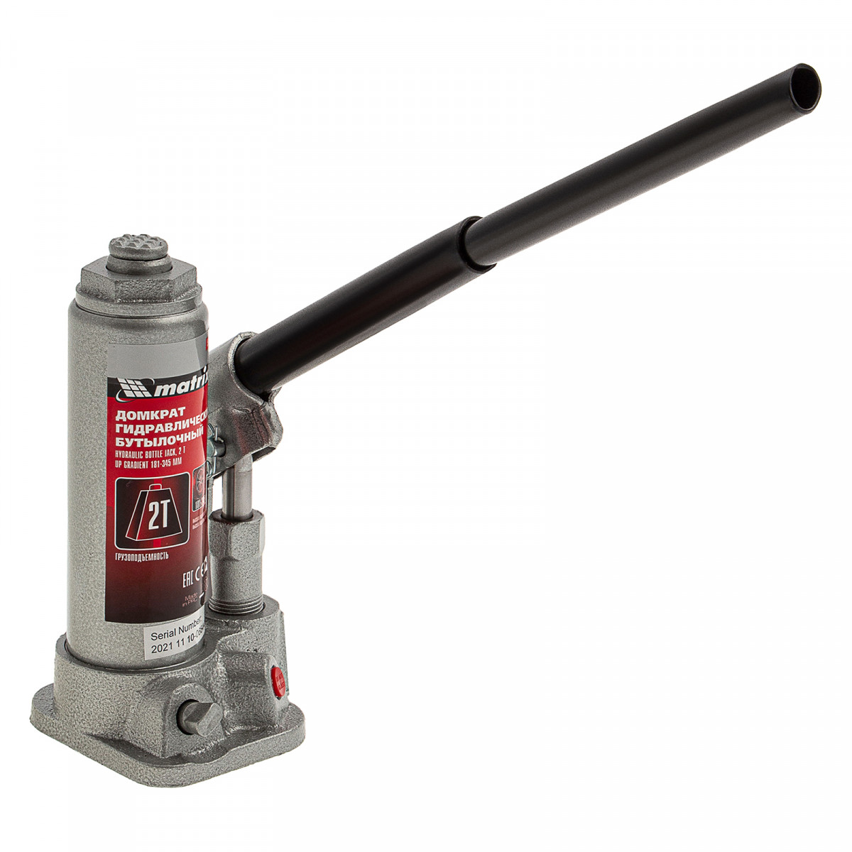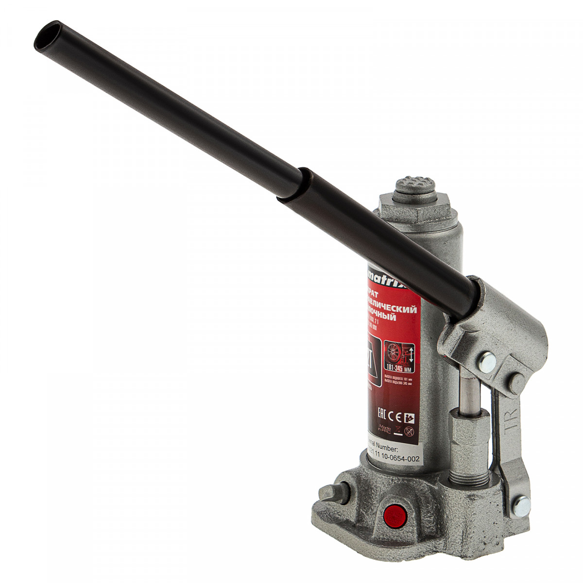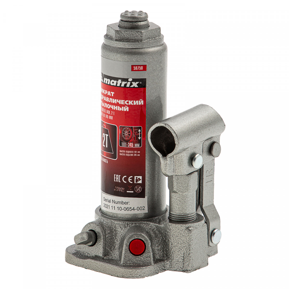 Домкрат гидравлический бутылочный, 2 т, высота подъема 181-345 мм, в пластиковый кейсе Matrix