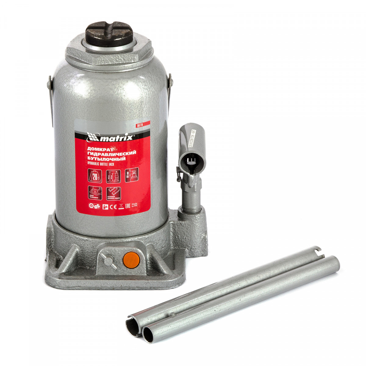 Домкрат гидравлический бутылочный, 20 т, h подъема 244-449 мм Matrix