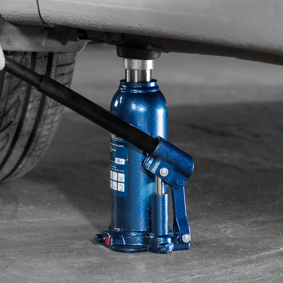 • Безопасная эксплуатация — благодаря предохранительному клапану домкрат не поднимает грузы тяжелее 6000 кг.