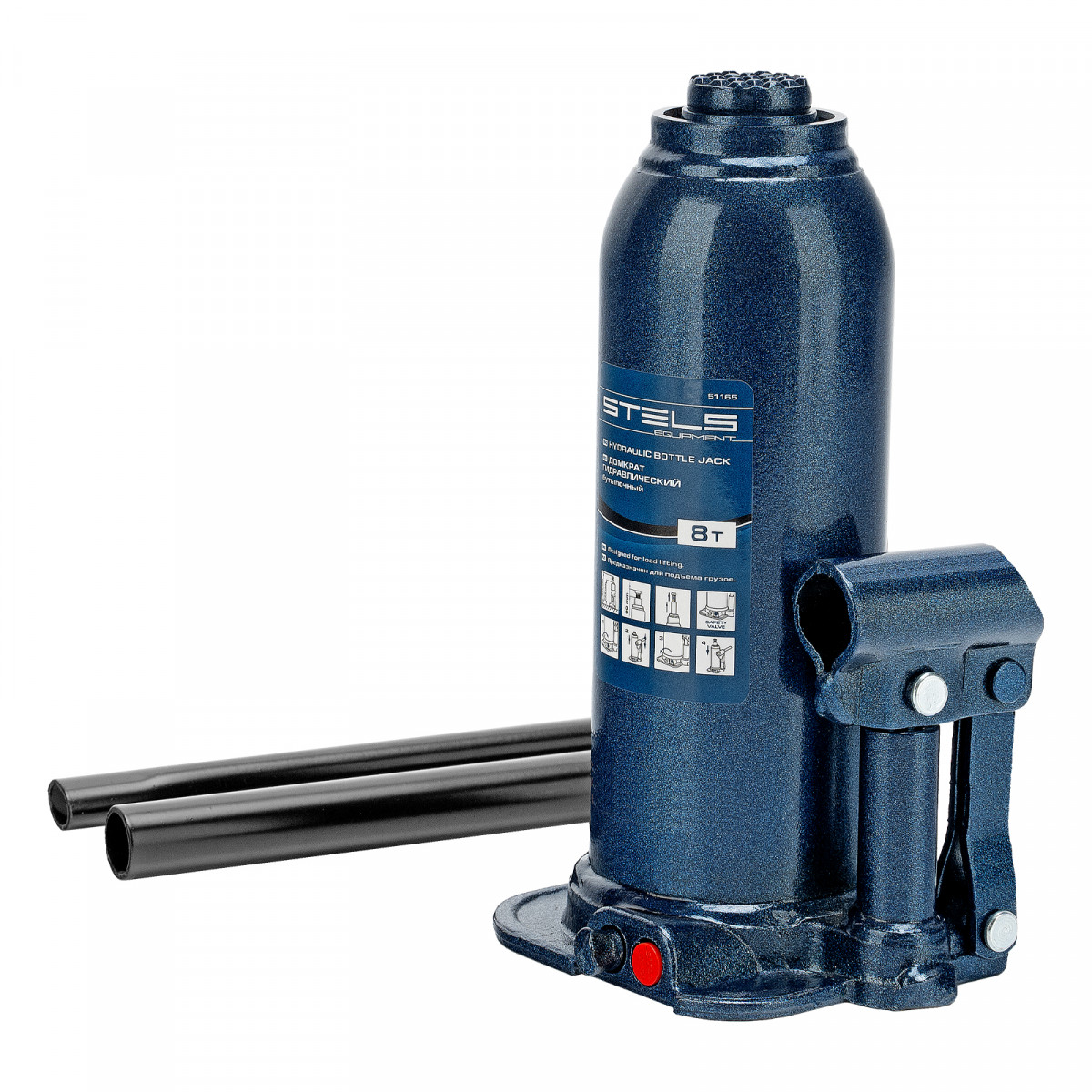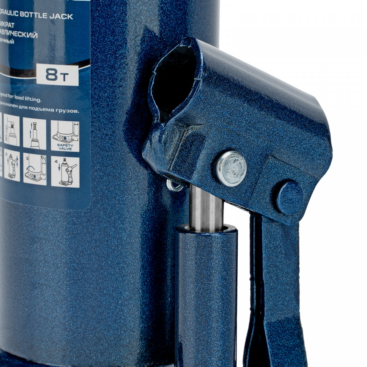 - Безопасная эксплуатация — благодаря предохранительному клапану домкрат не поднимает грузы тяжелее 8000 кг.