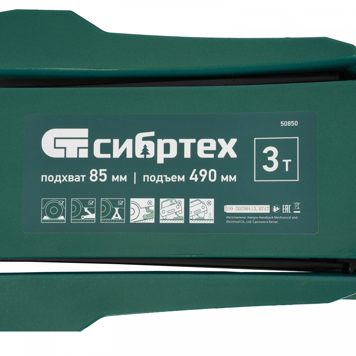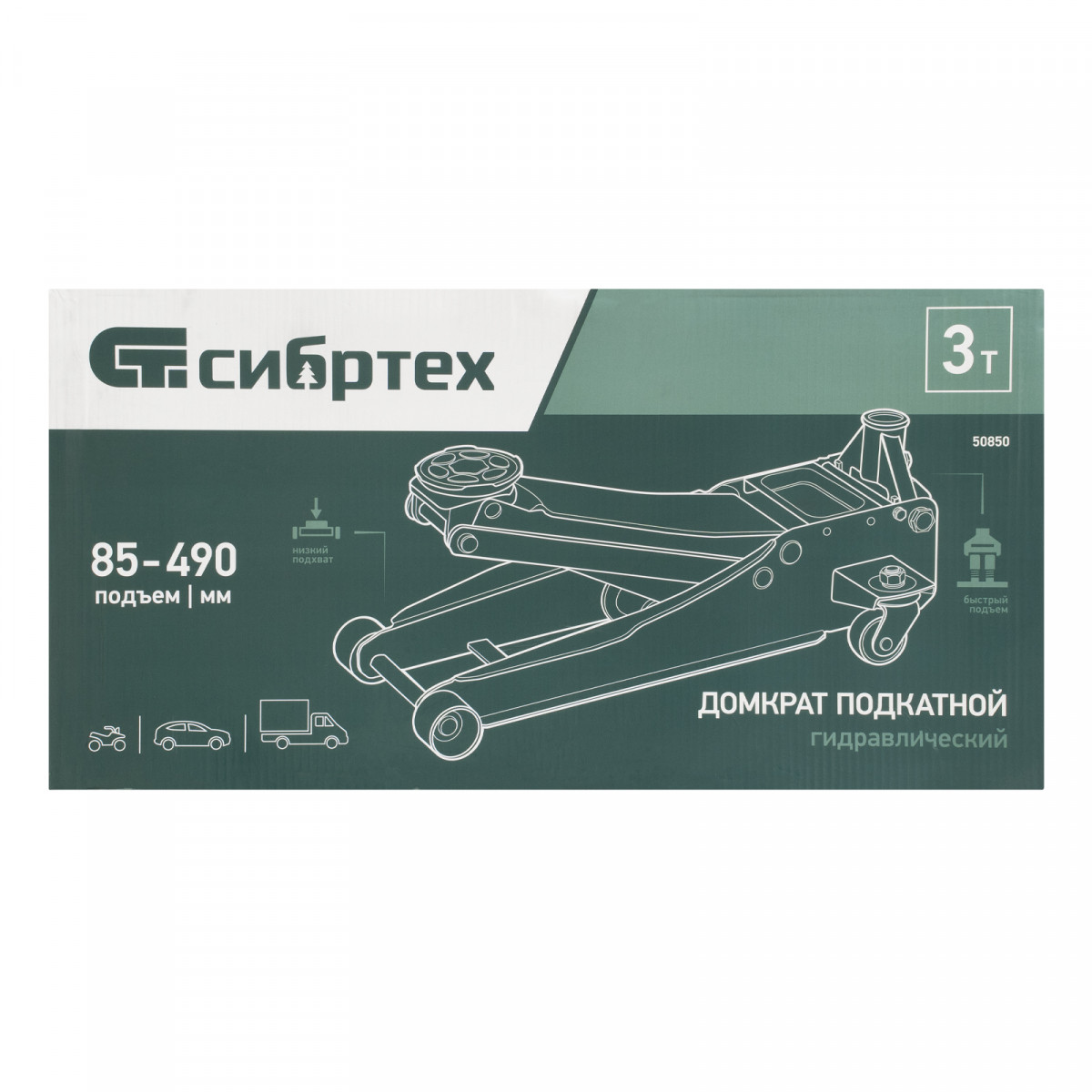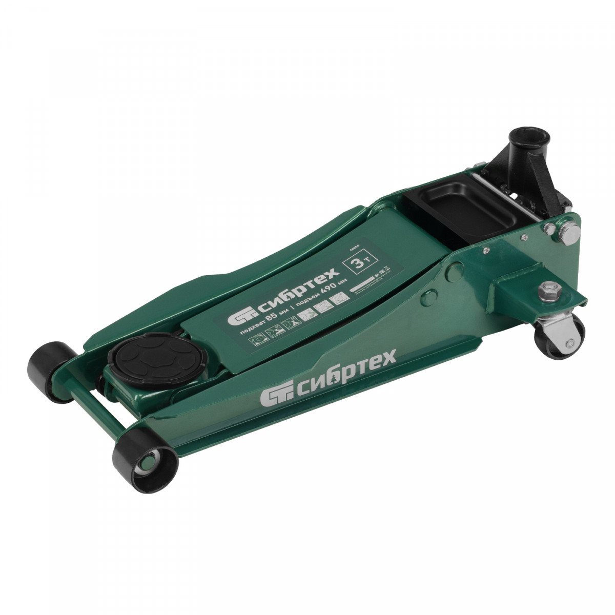 Домкрат гидравлический подкатной, 3 т, 85-490 мм, быстрый подъем, низкий подхват, проф. Сибртех