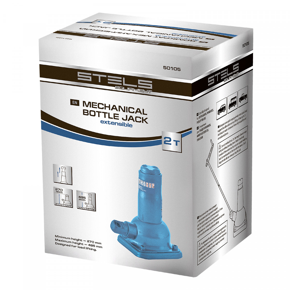 Домкрат механический бутылочный, 2 т, h подъема 270–485 мм, домкрат, ручка Stels