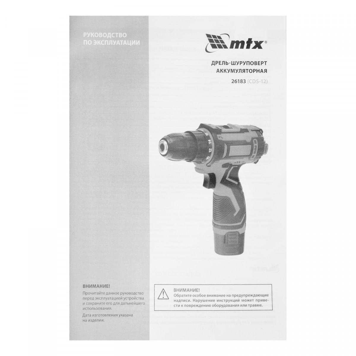Дрель-шуруповерт аккумуляторная CDS-12, Li-Ion, 12 В// MTX